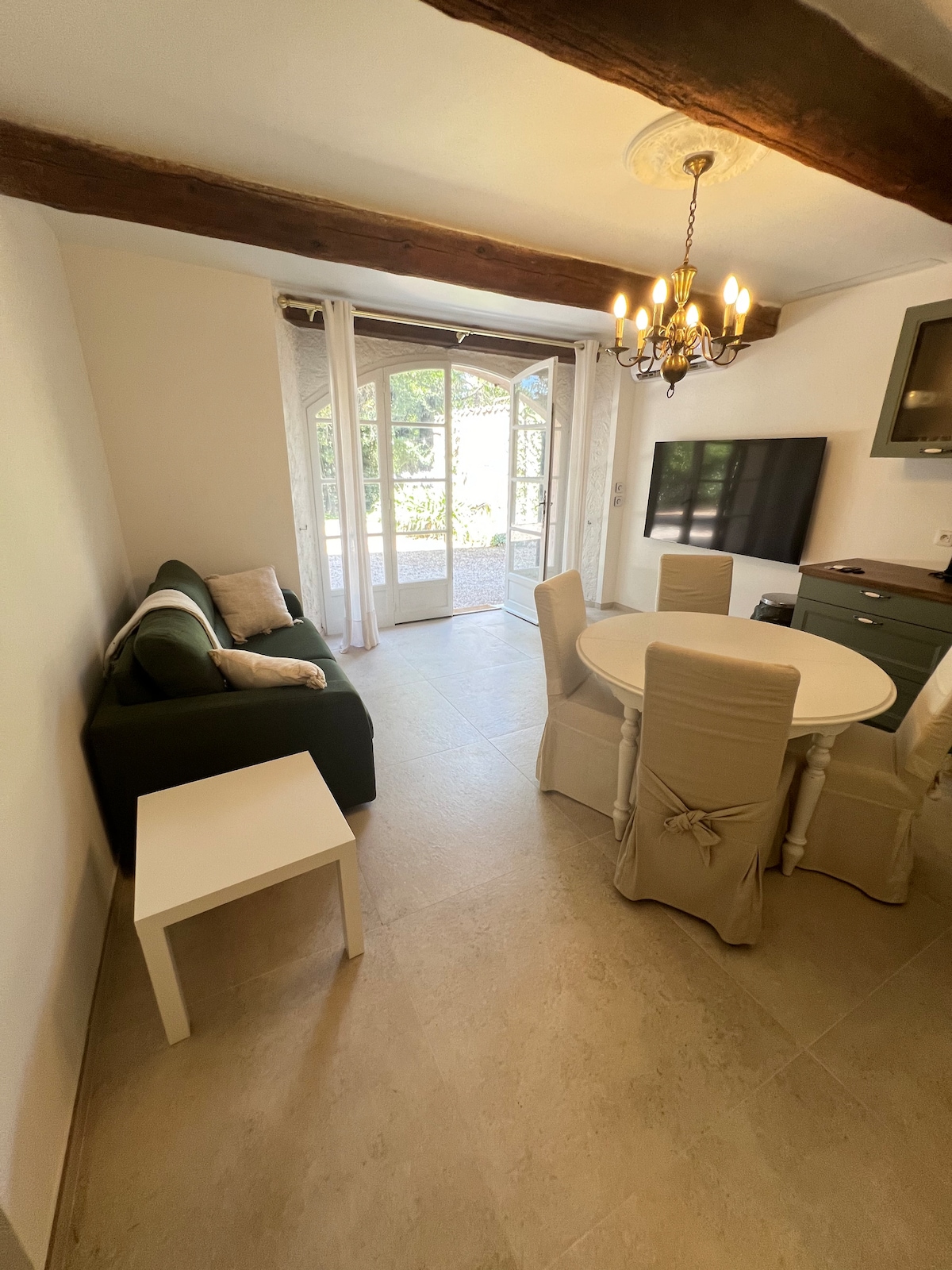 Entièrement indépendant, cuisine équipée , plancha extérieure , salon TV, 2 chambres climatisées, 1 salle d’eau, wc . Terrasse et piscine privative non chauffée. Un putting Green, salle de sport semi-ouverte équipée, non fumeur, animaux non acceptés, linge de lit , serviettes et ménage compris. Les lits sont fait. Wifi gratuit, Parking et accès privé . Tous commerces à 2 mns en voiture (supermarchés, pharmacie, médecins, restaurants , banque). Plages à 3 mns en voiture