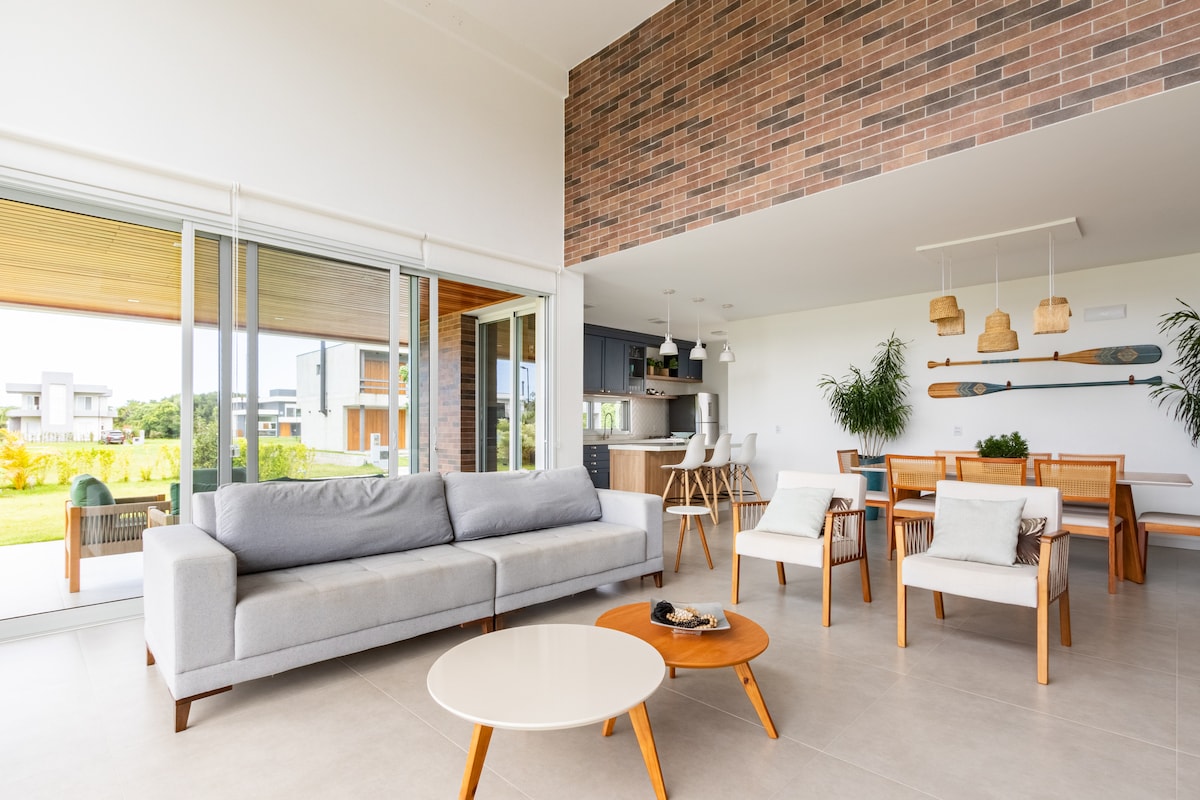 Esta casa en Garopaba ofrece una estadía completa para tu familia. Con una cocina equipada, 3 habitaciones climatizadas y una sala de estar cómoda, tendrás todo lo que necesitas. Además de estar al lado de Surfland Brasil, el condominio Rosa Internacional ofrece gimnasio, piscina al aire libre compartida y parque infantil. Los restaurantes están a pocos minutos, facilitando tus comidas. ¡No pierdas la oportunidad de reservar tu refugio ahora!
