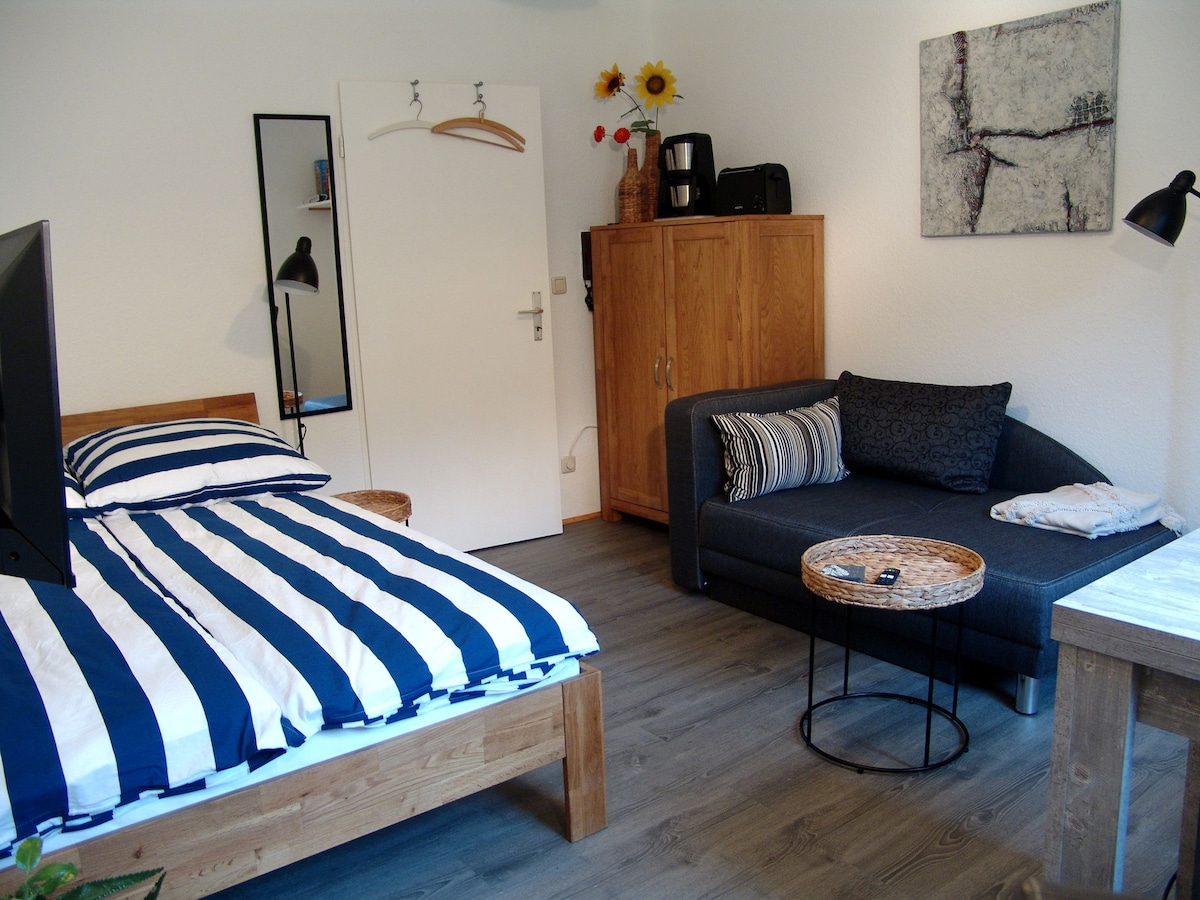 Acogedor apartamento de 60 metros cuadrados en una casa adosada histórica con acceso a la casa sauce Missomelius Hof. El apartamento tiene una amplia sala de estar/comedor con cocina totalmente equipada, un dormitorio con cama tamaño queen de 160x200 y un baño recientemente renovado. Muchos lugares de interés y el Lahnuferpromenade están a poca distancia. La piscina al aire libre y la piscina cubierta Aquamar están a 10 minutos a pie.