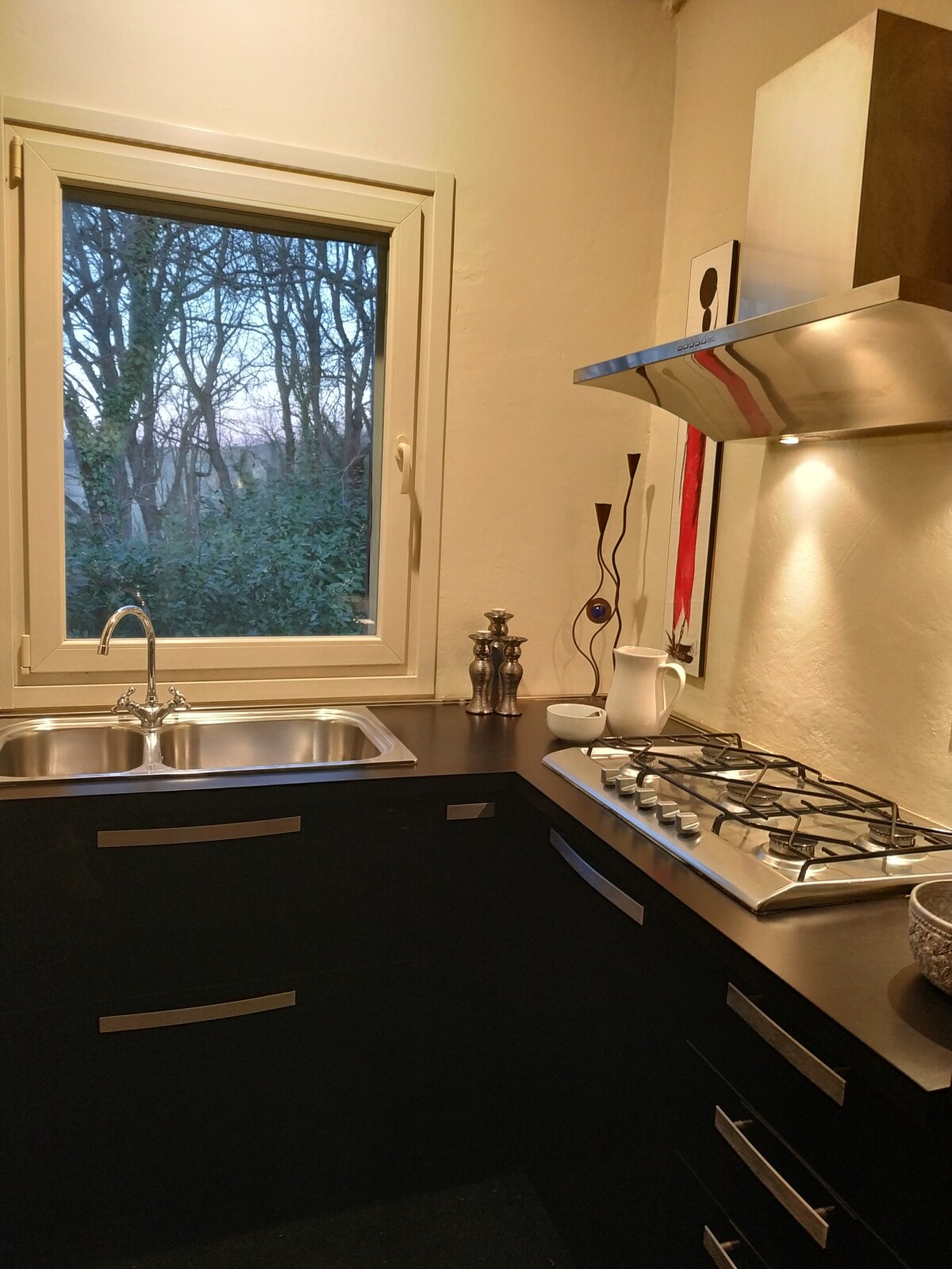 Granero de piedra finamente renovado con materiales finos (2019). La casa está dispuesta en dos plantas, con escalera de madera y vigas de techo. En la primera planta hay un baño y zona de dormitorio que consta de una cama doble y una cama individual; en la planta baja hay un acogedor salón con un sofá cama doble y TV de 55", una cocina moderna con vitrocerámica de inducción y comedor. Desde aquí se puede acceder al aire libre, que consta de un jardín, zona de relajación y comedor, donde se puede disfrutar de la barbacoa.