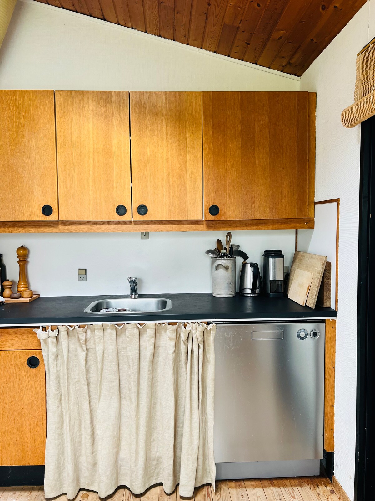 Da la bienvenida a nuestro pequeño y encantador oasis. Nuestra casa de campo de madera de 48 km2 contiene un dormitorio, cocina, sala de estar y baño. Junto a la casa principal, hemos construido un anexo de 19 km2, del que estamos muy contentos. Tendrás acceso al anexo si reservas para más de 2 personas. La casa es el santuario de nuestra pequeña familia, se siente como en casa y la cuida bien. Muchos saludos de Christopher y Trine