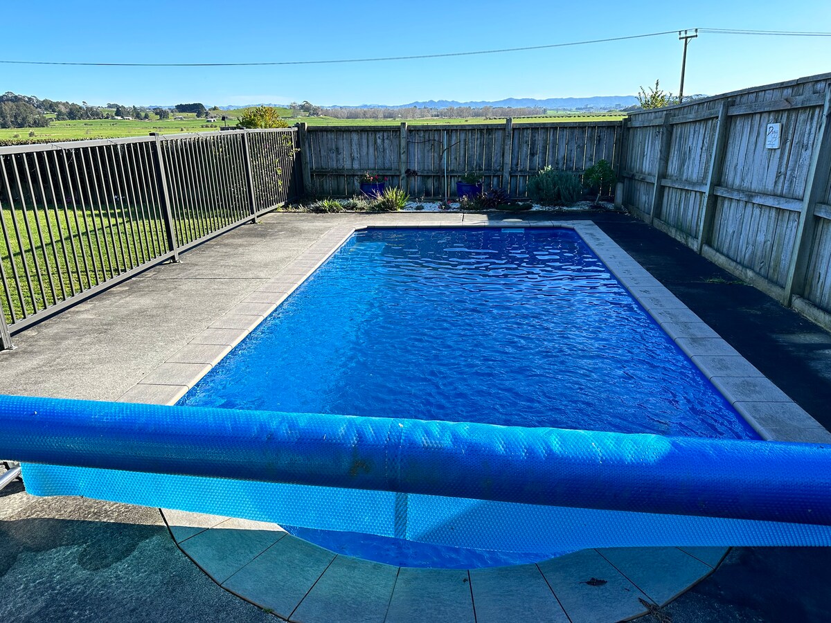 Este pequeño y tranquilo refugio/granja se 🐓🐑🐄 encuentra apartado de la carretera (a 350 metros en coche) en la zona rural de Waikato, a las afueras de Hamilton, donde las mascotas son bienvenidas. Tenemos aire acondicionado. Estamos a 50 minutos en coche de Hobbiton, las cuevas de Glow Worm, Kiwi House, paseos por Bush y Raglan y mucho más. El templo SUD está a 8 minutos en coche. Wifi, Netflix, Disney Plus y aire acondicionado disponibles. También ofrecemos lo básico para el desayuno. El sofá cama tamaño queen adicional solo está disponible para grupos de 3 o 4 personas.