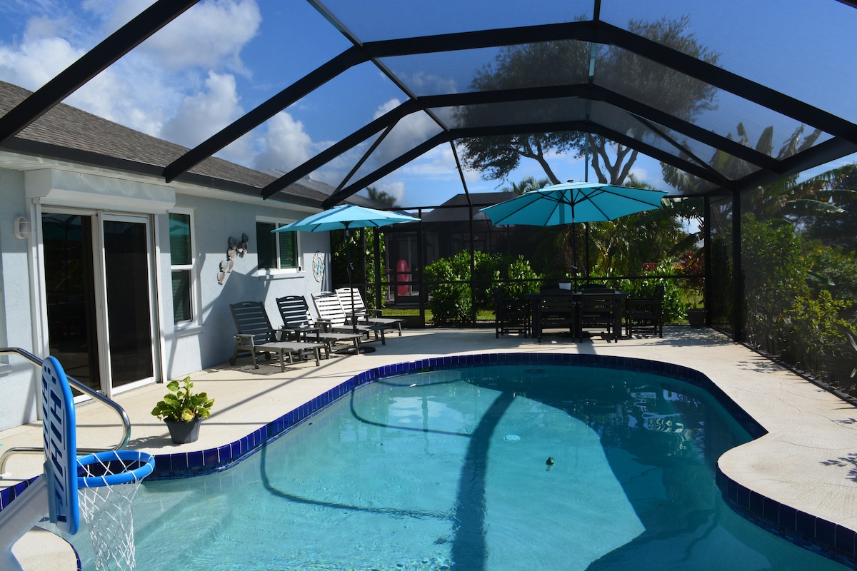 Your Perfect Florida Getaway Awaits! Bring the whole family to this stylish and spacious 4-bedroom villa with a heated pool. Located in a quiet neighborhood, just a short drive from beautiful beaches, lively bars, and top restaurants. Relax with a BBQ on the patio overlooking the golf course, take a swim, or cycle the scenic Cape Haze Trail. Sunshine, space, and unforgettable memories—book your stay today! Please note that the pool is heated at no extra cost.