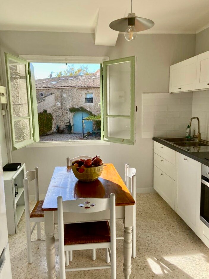A quelques minutes de Pezenas , dans une grande maison vigneronne rénovée, cet appartement de 55m2 vous tend les bras. Une chambre ( lit en 160x200) de 15m2 avec vue sur la piscine dans l'arrière cour, et salle d'eau attenante. Un salon cuisine de 31m2 avec un canapé convertible ( lit 140x190 ) Une cuisine équipé ( four , micro onde , plaque vitrocéramique , réfrigérateur et cafetière expresso). Une rénovation de charme dans de l'ancien, un véritable petit écrin.... qui n'attend plus que vous.