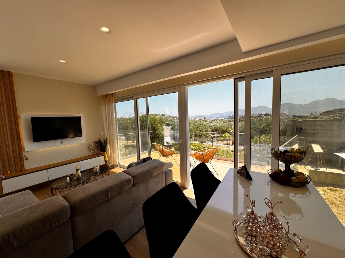 ¡Disfruta de unas vacaciones tranquilas en el mar! Despiértese por la mañana viendo un amanecer único desde su cama. Relájate en el jacuzzi al aire libre, en la piscina compartida, en las terrazas, escuchando el sonido de las olas y el canto de los pájaros. Las vistas son excelentes desde cualquier lugar. Frente a usted, el azul infinito del mar de Creta, a su alrededor, la impresionante naturaleza cretense. Desde los dos salones hasta los dormitorios, el comedor, la cocina, los baños, la ducha al aire libre, la vista es impresionante.