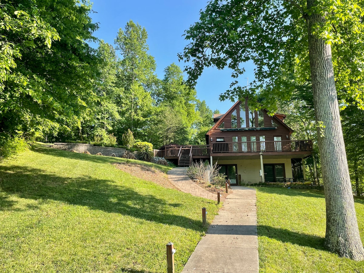 Anteriormente anunciado con una calificación de 4,99 y 357 reseñas. Este refugio moderno de mediados de siglo, ubicado en una relajante cala, cuenta con paredes de vidrio del suelo al techo que permiten el paso del exterior, hermosas vigas de madera a la vista, suelos de madera y una acogedora chimenea de hormigón. Disfruta del porche acristalado, la cocina actualizada y las impresionantes vistas al lago. La suave pendiente hacia el muelle privado pasa por numerosos rincones de descanso. Conveniente para el Triángulo, la Tríada y el VIR, es la mezcla perfecta de relajación y aventura.