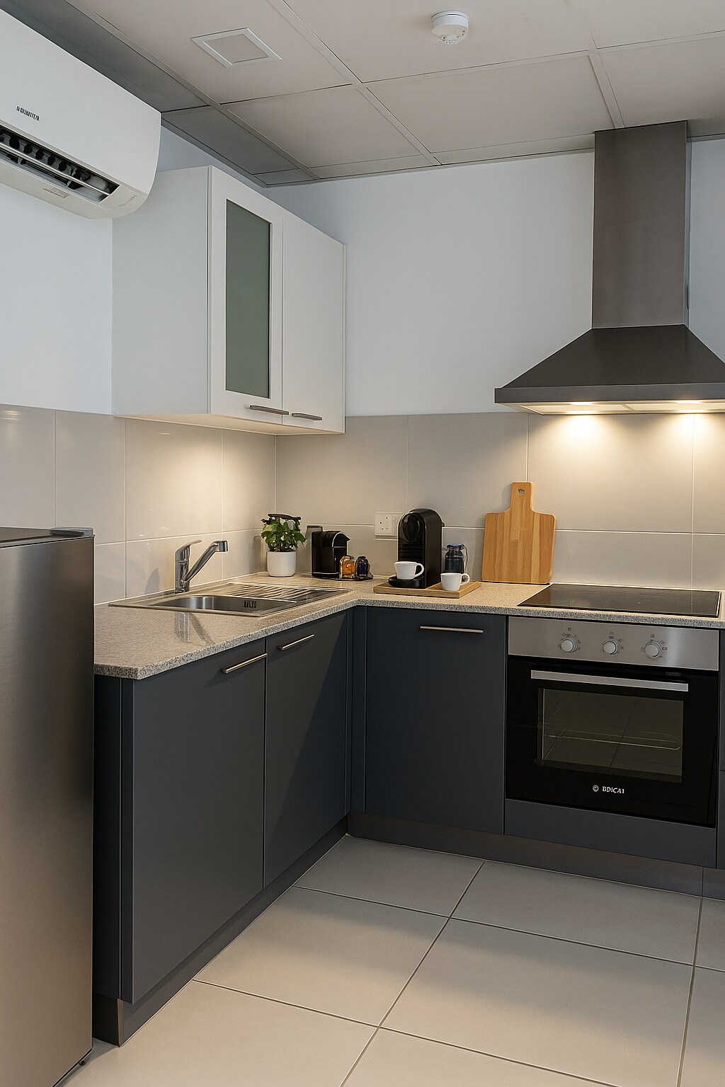 Apartamento moderno y acogedor en el centro de Mascate, cerca de las principales atracciones y con fácil acceso a la ciudad. Cuenta con TV inteligente, wifi de alta velocidad, cocina totalmente equipada y muebles cómodos. Perfecto para viajeros que buscan comodidad y conveniencia en el corazón de Mascate. El edificio cuenta con una piscina en la azotea, un cine privado y seguridad las 24 horas, los 7 días de la semana, además de estacionamiento privado en las instalaciones. El supermercado más cercano está a 7 minutos a pie y la playa a 1,2 km.