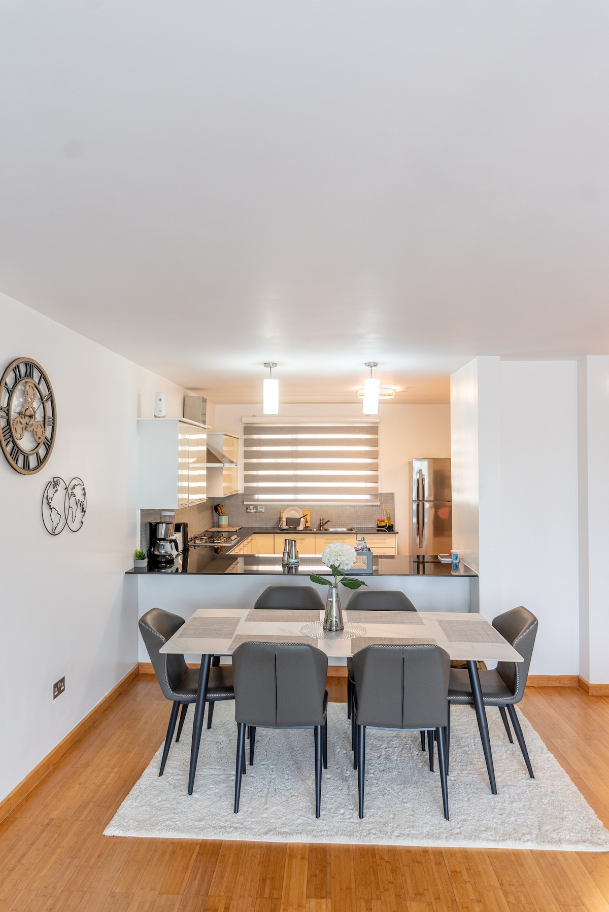 Nuestro tranquilo y único apartamento de un dormitorio es moderno y elegante, y se encuentra en Mi Vida Homes - Garden City Mall, en la salida 7 de Thika Road. Mi Vida es un lugar perfectamente sereno para alojarse mientras estás de vacaciones, trabajando o como hogar, con espacios verdes bien cuidados y coloridos jardines de flores. La piscina y el gimnasio totalmente equipado te ayudan a mantenerte en forma y relajarte, con un patio al aire libre en la azotea para relajarte o hacer una barbacoa. Ofrece fácil acceso al centro de negocios de Nairobi y al aeropuerto JKIA.