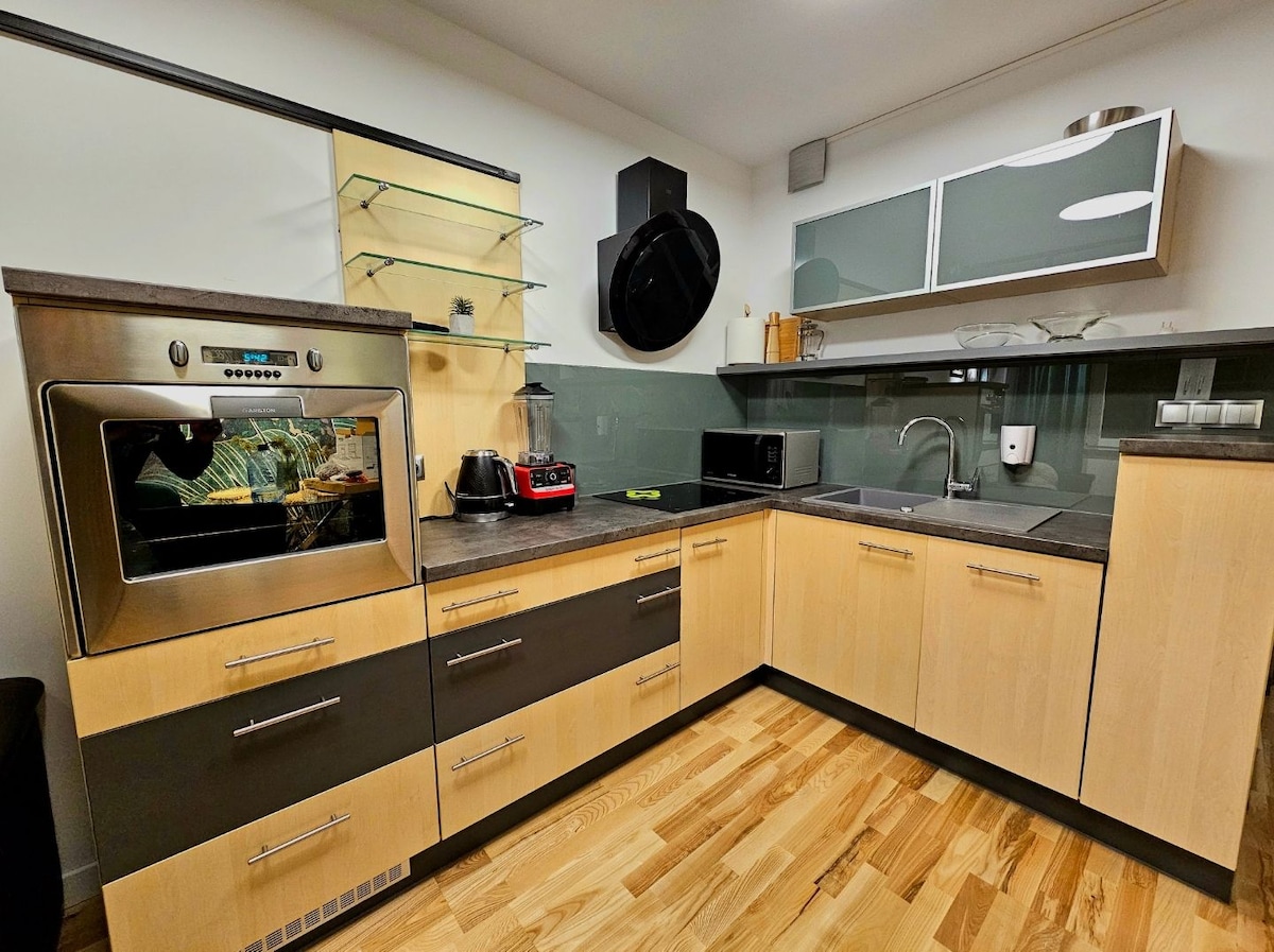 Amplio apartamento totalmente equipado en el centro de Katowice. Consta de tres habitaciones separadas: un dormitorio, una cocina totalmente equipada conectada con un comedor y un baño. En el apartamento encontrarás un televisor inteligente con acceso a plataformas de transmisión populares como Max, Prime Video o Disney+. Con el café de la mañana, estarás acompañado por mis pinturas. A 400 m de la estación de tren A 500 m de la plaza del mercado. ¡Te invito cordialmente!