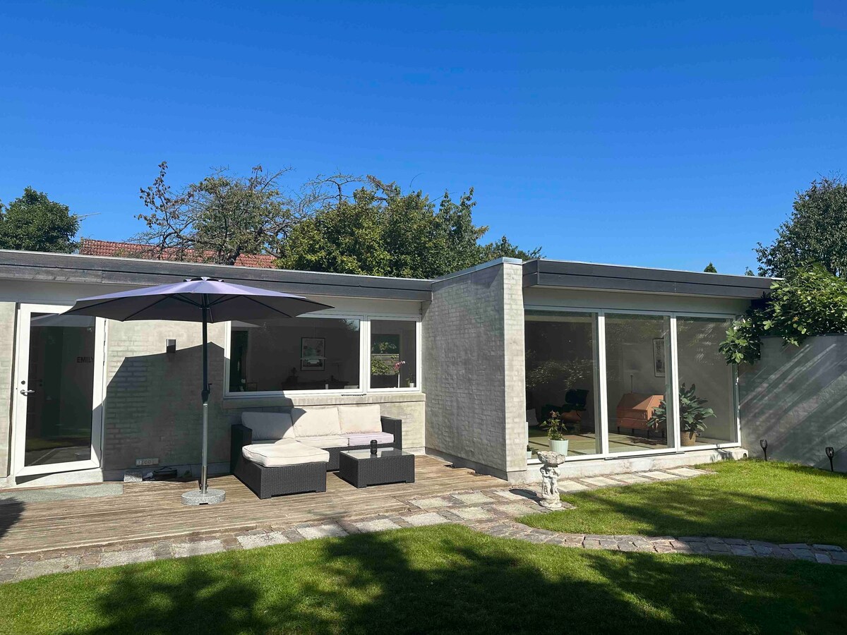 Casa diseñada por un arquitecto de 1947 en la pintoresca Hjortekær, una antigua zona de casas de verano conocida como la Suiza de Dinamarca. La casa tiene 2 dormitorios y capacidad para 4 huéspedes. Grandes ventanales, carpintería original y ambiente tranquilo. Rodeado de colinas, bosque y canto de pájaros, cerca del estrecho y a poca distancia de Copenhague. Perfecto para los amantes de la naturaleza, los amantes de la arquitectura y la tranquilidad cerca de la ciudad. Ideal para: Artistas, amantes de la naturaleza, admiradores de la arquitectura y aquellos que solo quieren escaparse, sin estar lejos.