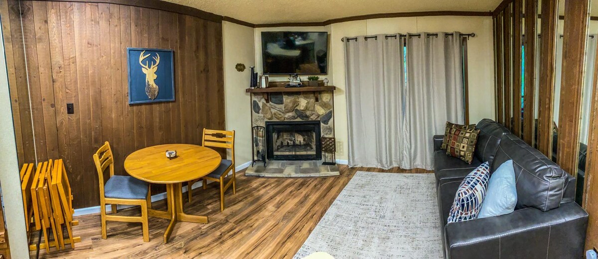 Trae a amigos o familiares a esta rústica y encantadora cabaña con mucho espacio. Esta cabaña actualizada cuenta con todas las comodidades que necesitarás durante tu estancia. «Casa Bonita» es acogedora, pero es el refugio perfecto para descansar y relajarse. Esta cabaña de un solo nivel tiene capacidad para 4 personas cómodamente y consta de 2 dormitorios y 2 baños. Esta cabaña tiene una terraza doble para disfrutar del aire libre. Esta cabaña incluye una bañera de hidromasaje en la cubierta inferior para relajarse de verdad y disfrutar del aire de la montaña. ¡Esta cabaña está a pocos minutos de la ciudad!