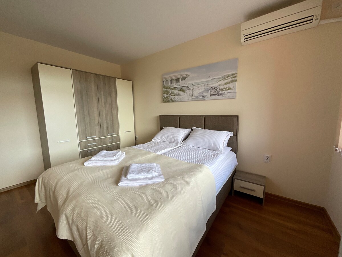 Disfruta de una estancia cómoda en este apartamento de 64 m² de un dormitorio, perfectamente ubicado en Veliko Tarnovo. La sala de estar tiene un sofá cama para dos personas, por lo que es ideal para un máximo de 4 huéspedes. Tendrás una cocina totalmente equipada, un balcón privado y un baño. Cerca de grandes supermercados (Lidl, Billa) y estaciones de autobuses. Estacionamiento gratuito en la calle y fácil llegada autónoma con caja de llaves. Tiene la aplicación Netflix. Puedes usar tu cuenta de Netflix. ¡Perfecto para una visita relajante y cómoda a la ciudad histórica de Bulgaria!