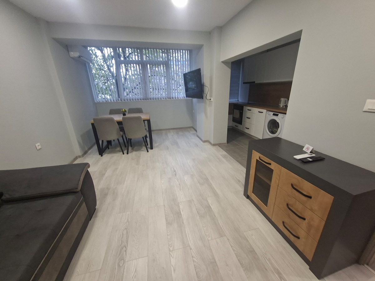 Estudio de lujo en la parte más atractiva de Rousse, a 50 metros del río Danubio y a 2 minutos a pie de la plaza central de la ciudad. El estudio tiene su propio baño, cocina americana, mesa de comedor, escritorio, nevera, secador de pelo, plancha, tabla de planchar, lavadora con secadora y juego completo de cubiertos y vasos. La cama principal mide 180x200 cm con un cómodo colchón de lujo. El estudio está en la planta baja en un edificio de nueva construcción y tiene vistas a un patio privado.