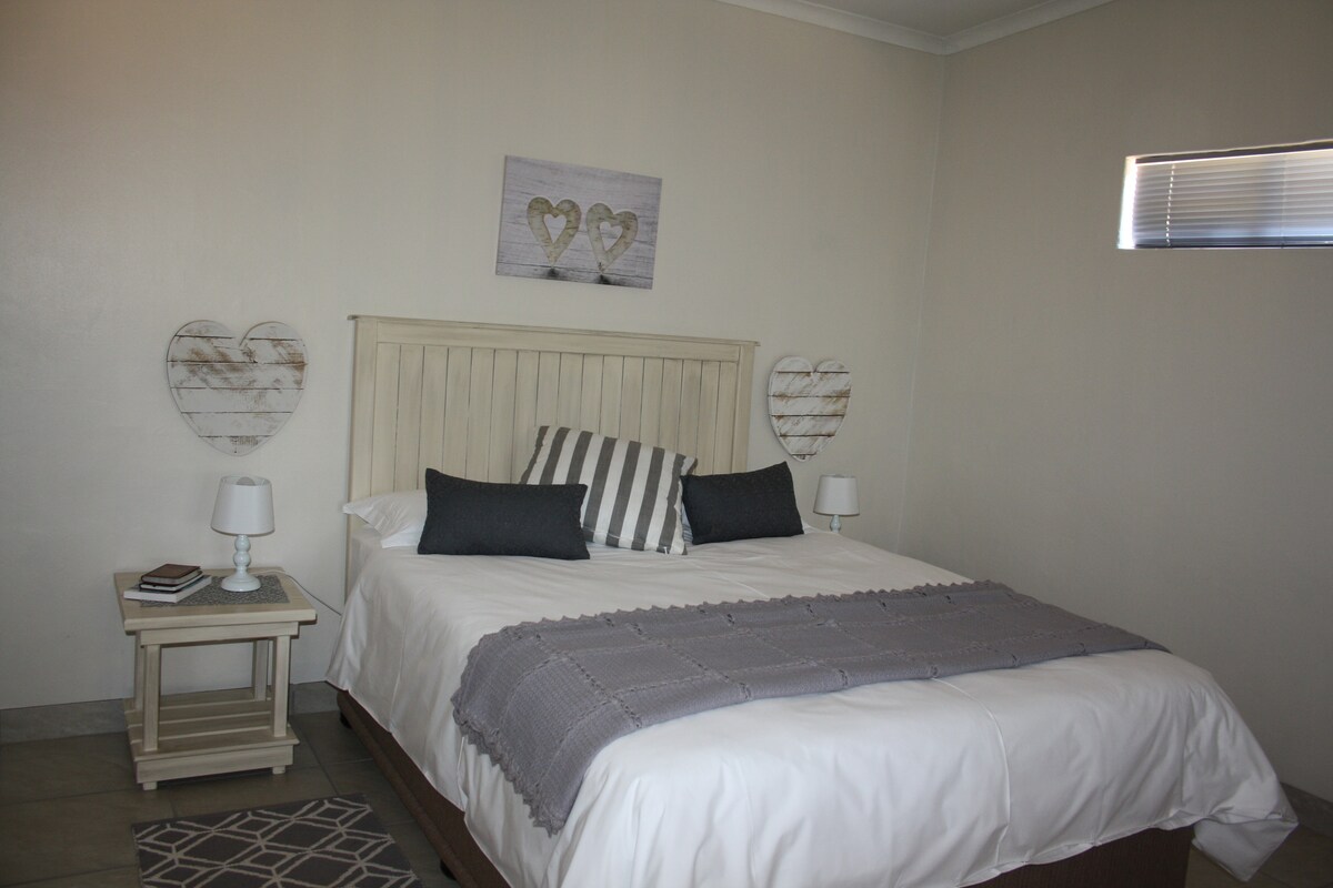 Amplio chalet de 2 dormitorios con una cama doble en la habitación principal y dos camas individuales en la segunda. La cocina de planta abierta, el comedor y el salón ofrecen un espacio cómodo para cocinar, comer y relajarse. El baño está equipado con ducha. En el exterior, disfruta de aparcamiento cubierto, una zona de barbacoa y asientos en el jardín. Ubicado en una casa de huéspedes segura con seguridad nocturna, ideal para familias, grupos o estancias de negocios en Rustenburg.