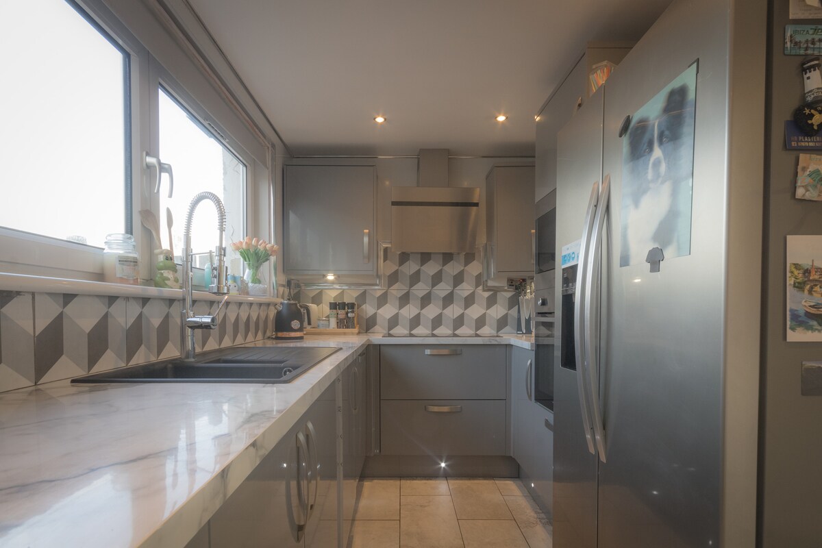 Relájate en este espacio tranquilo y elegante. Excelente ubicación para el centro de la ciudad. A poca distancia a pie de estadio hampden,y Glasgow Green. Ovo Hydro Top golf, trampolines plegables karts de interior, a diez minutos en taxi. El apartamento también tiene acceso completo al jardín delantero y trasero. Taxi privado disponible para recoger en el aeropuerto,tren o autobús,los precios varían en la hora y el día de recogida No se toman reservaciones de Glasgow ni de sus alrededores,excepto si los huéspedes son miembros de la misma familia
