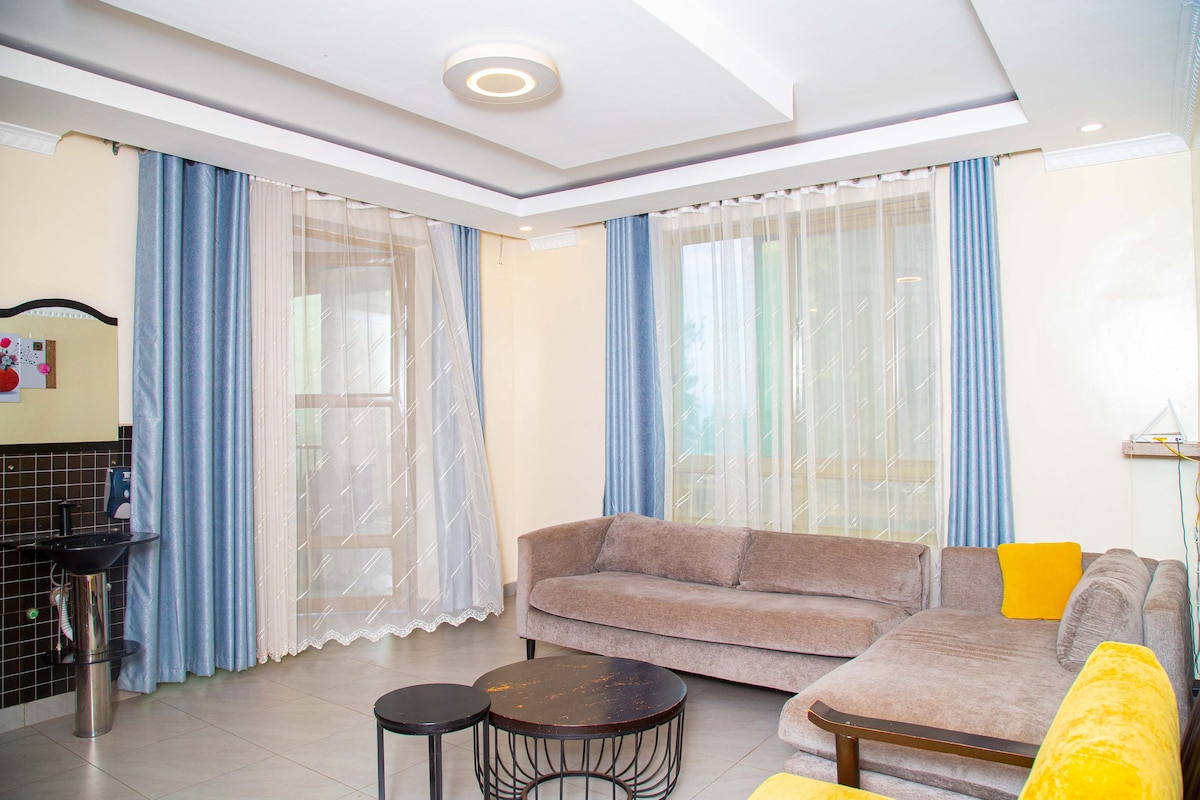 Bienvenido a Kacyiru Gem, un apartamento de 1 dormitorio que armoniza la vida moderna con la creatividad artística. Su diseño ecléctico, decoración de buen gusto y ubicación conveniente lo convierten en una opción cautivadora para estancias cortas y de media duración en Ruanda. Wifi de alta velocidad, café expreso y lavadora secadora son algunas de las comodidades que hacen de este apartamento una buena opción para un hogar lejos de casa.