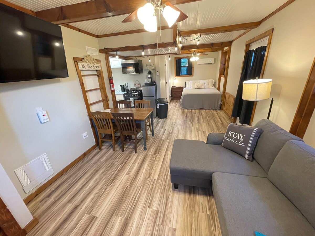 Este «pequeño apartamento» rústico es el secreto que ni siquiera sabrías que estaba allí (apartamento en el sótano). Con cocina, baño completo, cama tamaño queen y sofá convertible, ¡esto es todo lo que podrías esperar de un espacio pequeño! Tenemos varios libros y juegos de mesa para disfrutar de tu tiempo juntos y la pantalla plana de 50" está ahí, por si acaso la lectura y los juegos no son lo tuyo. Si necesitas un lugar tranquilo para escapar por un tiempo o un lugar limpio para recostar la cabeza, ¡estamos aquí para ayudarte!