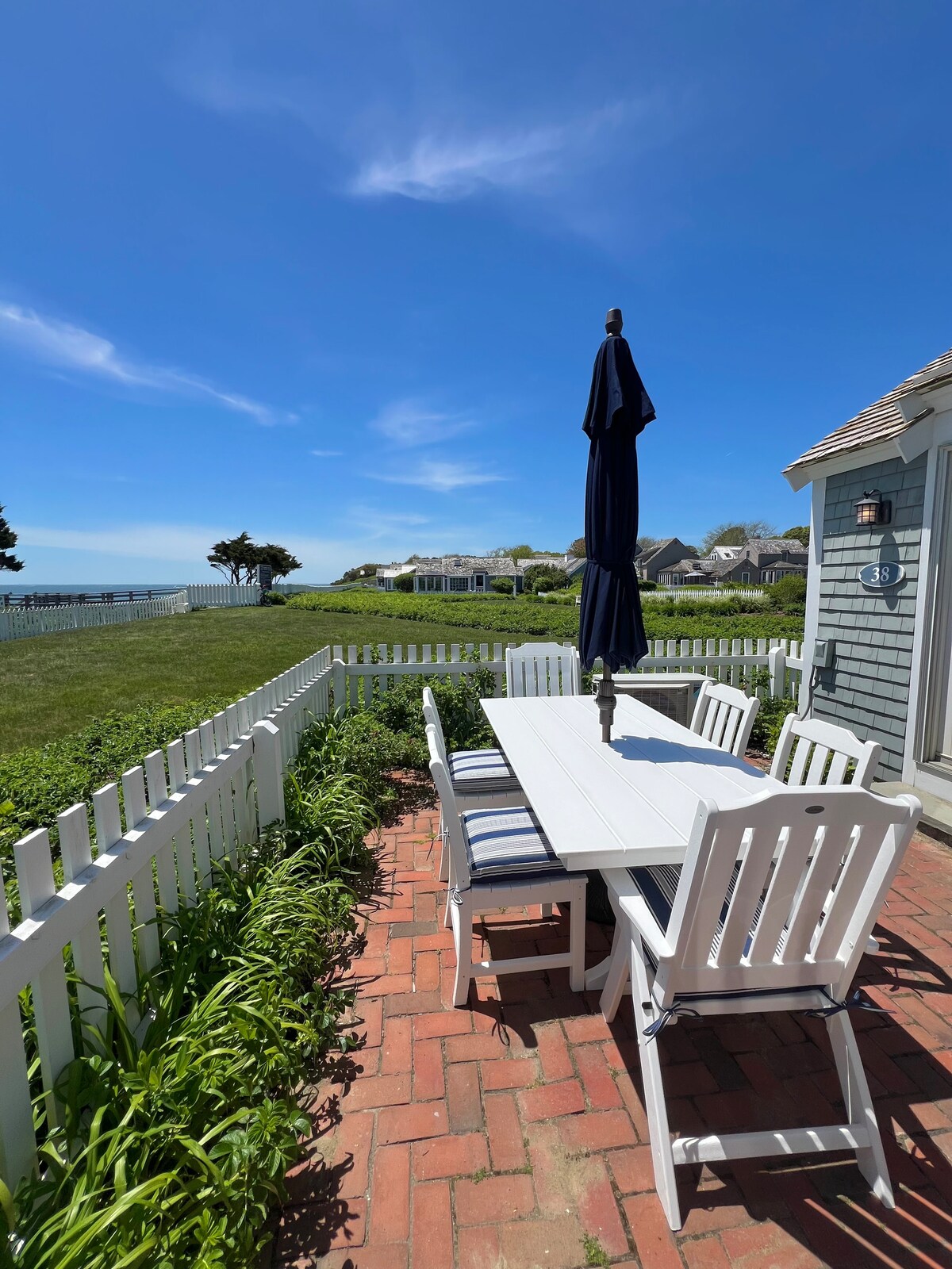 Esta casa de campo New Seabury frente a la playa de 2 dormitorios tiene vistas al Nantucket Sound, que ofrece impresionantes vistas y un espacioso patio perfecto para el café de la mañana, las barbacoas y la observación de las estrellas. Está a solo unos pasos de la playa privada y a poca distancia a pie de Popponesset Marketplace, el mejor lugar para tomar comida y bebidas mientras disfrutas de música en vivo y minigolf, ¡la vida de verano por excelencia de Cape Cod! *Popponesset Marketplace (10 minutos a pie) está cerrado durante la temporada baja, pero Mashpee Commons(10 minutos en auto) está abierto*