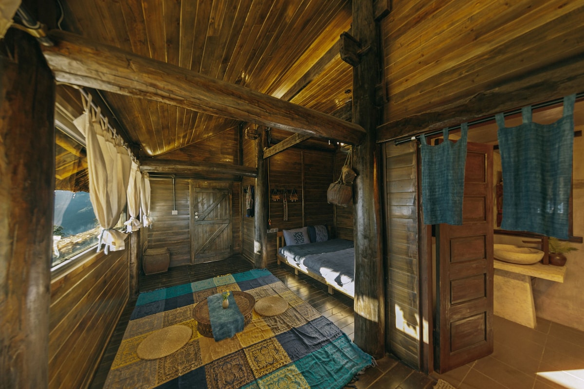 Casa de madera - Dormitorio con vistas a la montaña @Amazing Sapa M