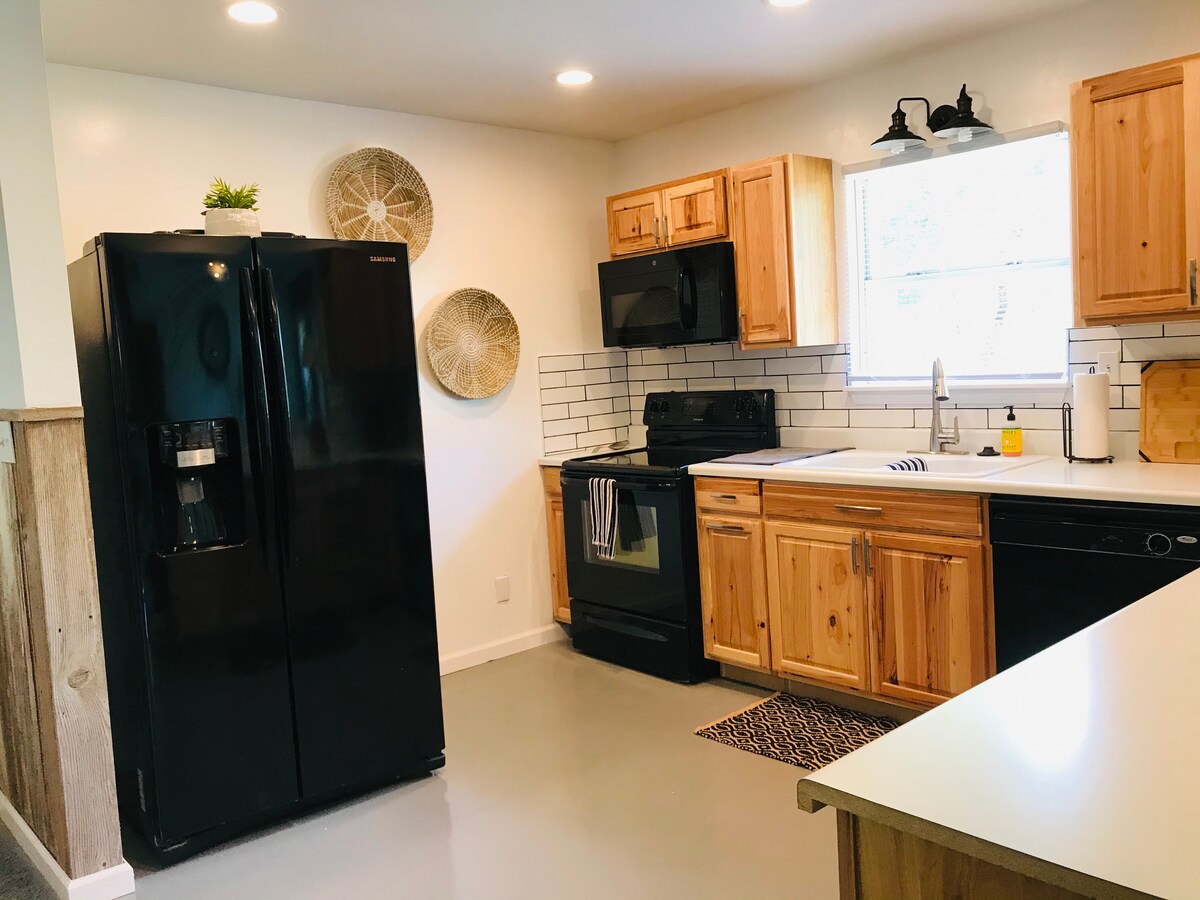 Welcome! Step inside this newly remodeled home, pull a shot of espresso and relax. This home has strong Wi-Fi, but no television. For the chef- This kitchen is fully stocked with table service, kettles, baking pans, blender, mixer, electric griddle and much more. Each of the three bedrooms has a queen-sized bed. Completing the house are two full bathrooms and hiding behind a sliding barn door you will find a laundry complete with washer, dryer, iron and ironing board.