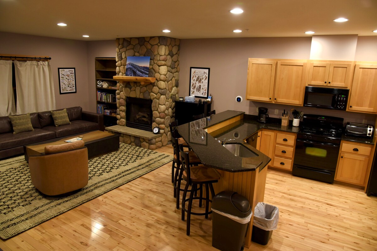 Nuestro «Slopeside Oasis» es tu refugio ideal durante todo el año. Disfruta de la comodidad en invierno y del fácil acceso a las rutas de ciclismo y senderismo en todas las estaciones. Relájate junto a la chimenea de propano, sumérgete en nuestro jacuzzi privado o suda en nuestra sauna interior. Con 4 dormitorios y 3,5 baños, este espacioso apartamento ofrece la combinación perfecta de comodidad y aventura. Con una ubicación céntrica, es tu puerta de entrada a las mejores actividades de las cuatro estaciones, lo que lo convierte en la mejor escapada para la relajación y la diversión al aire libre.