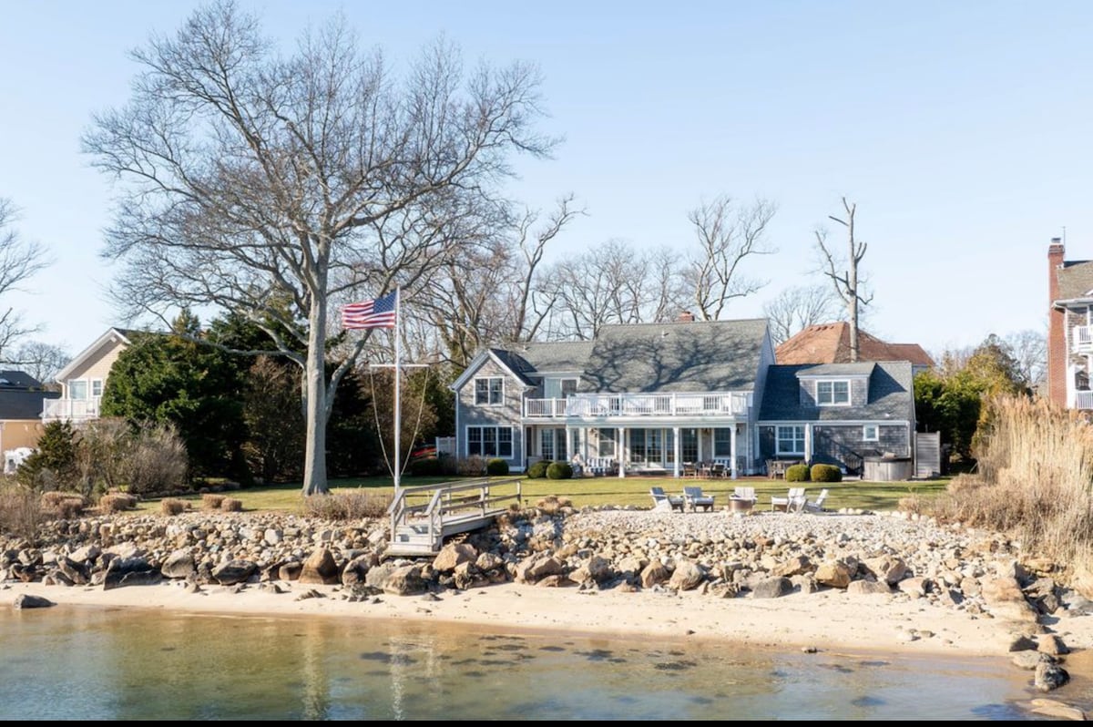 Increíble casa de vacaciones frente a la playa ubicada directamente en una playa privada de arena en Shinnecock Bay. Impresionantes vistas al mar: amaneceres y atardeceres. Haz una barbacoa y relájate en la terraza trasera y observa los barcos pasar o da un paseo rápido o coge un barco lanzadera a algunos de los mejores restaurantes de los Hamptons. No te preocupes por tomar una copa y llegar a casa. Te encantará mi casa por la ubicación y el ambiente. Mi casa es ideal para parejas, aventureros solitarios, viajeros de negocios y familias (con hijos).