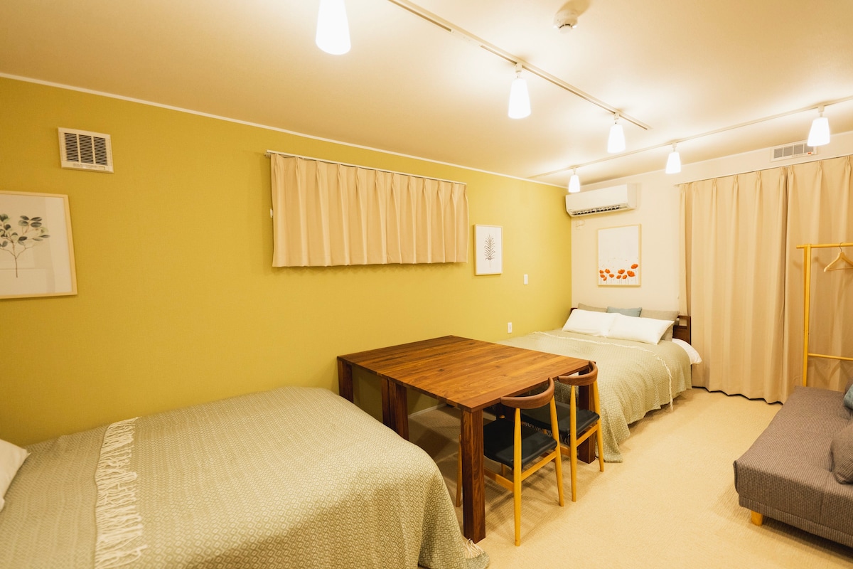 ¡¡[Edificio principal] Equipado con 2 camas dobles, 1 sofá cama, comedor, cocina, baño y lavadora!!