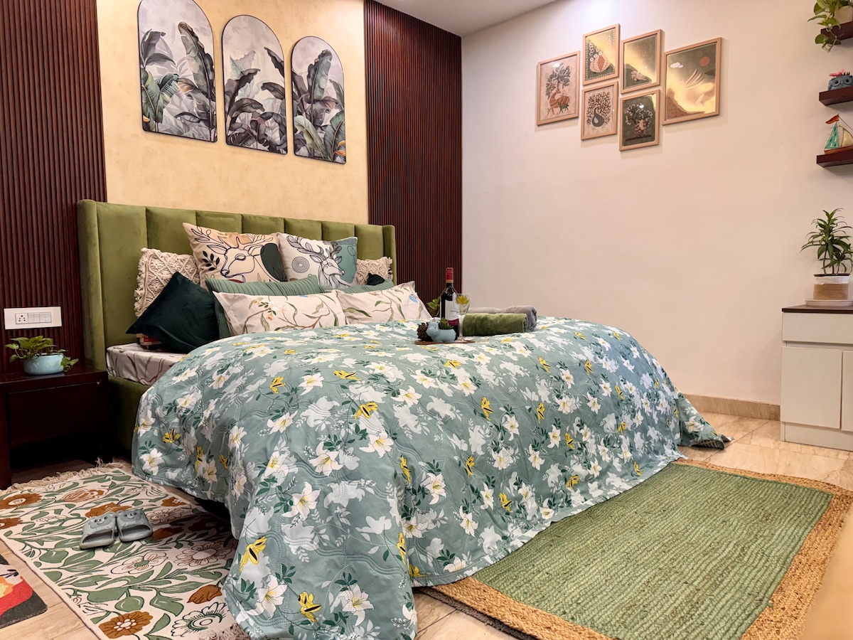 Ālaya | Entire Private Floor with Luxurious 2 Bedrooms and a Sunlit Patio |Sector 42 Imagine having an entire private floor to yourself, tucked away on the 2nd floor (accessed via staircase; no lift) in a calm residential neighbourhood. Step into a thoughtfully designed home with two spacious bedrooms, a connected washroom, and a fully equipped kitchen. Now picture yourself stepping out onto the large private patio, your own open-air retreat. A space designed for guests who value elegance!