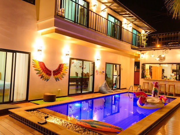 Back To Nature Aonang Boutique Pool Villa villa grande con piscina privada - 4 dormitorios, 4 baños. - 2 jacuzzis. - Parrilla. - Piscina privada con sistema de cascada. - Mesa de billar gratuita todo el día - Equipo de cocina con condimentos. - Sala de estar con karaoke - Los televisores inteligentes grandes tienen Netflix gratuito en todas las habitaciones. - Lavadora gratuita. - Solo habitación. Nota : tarifa del seguro contra daños, 3000 THB, pero se recibirá un reembolso al hacer el check-out.