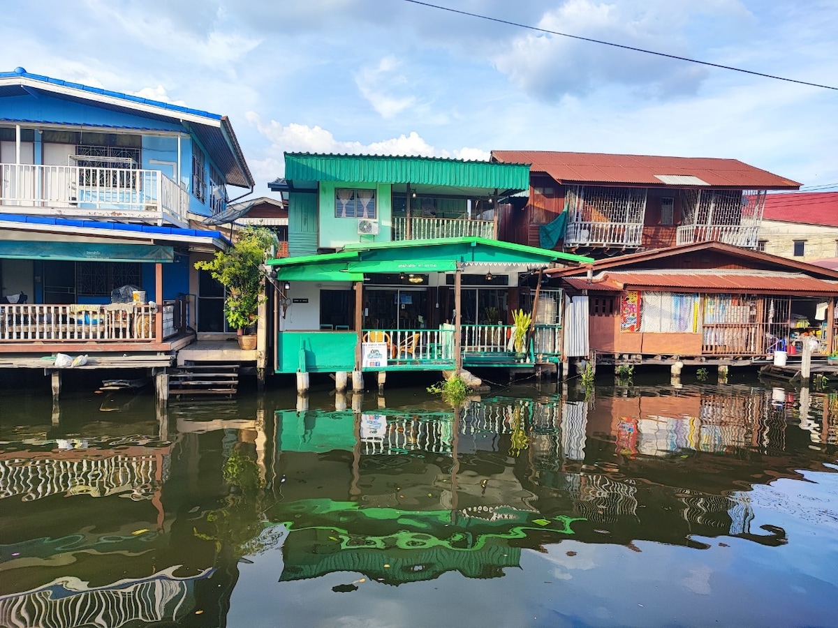 La casa verde Talingchan Casa clásica de estilo tailandés junto al agua. Experimenta la vida comunitaria sencilla y pacífica. Escápate del ajetreo. Ven y disfruta de la vida baja aquí. Tiene capacidad para 2-5 personas. 3 dormitorios 1 baño 1 baño 1 ducha 1 cocina Lugares cerca Mercado flotante Taling Chan a 1,5 km Central Pinklao 5,4 km. Khaosan Road 9 km El Gran Palacio está a 9 km. Ciudad de China a 10 km Plaza Siam a 13 km Aeropuerto Don Mueang a 28 km Aeropuerto de Suvarnabhumi a 42 km. Actividades En el agua Remo Haz una peregrinación por la mañana. Paseo en barco por el canal para rendir homenaje a la plantación de orquídeas.