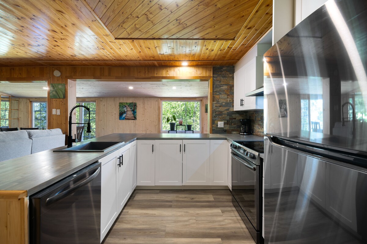 A menos de 2 horas de Montreal, entre el lago y el bosque, Chalet Levätä, es el lugar ideal para recargar energías en plena naturaleza. En pareja, en familia o con amigos, disfruta de la terraza con vistas al lago, del acceso al lago con muelle privado para bañarse (camino empinado en estado natural, sin acondicionar) y de la sauna interior. Nuevo y construido con todo nuestro corazón, la cabaña ofrece todas las comodidades en un ambiente relajante. Servicios a menos de 10 min. ¡La zona está llena de actividades verano como invierno!