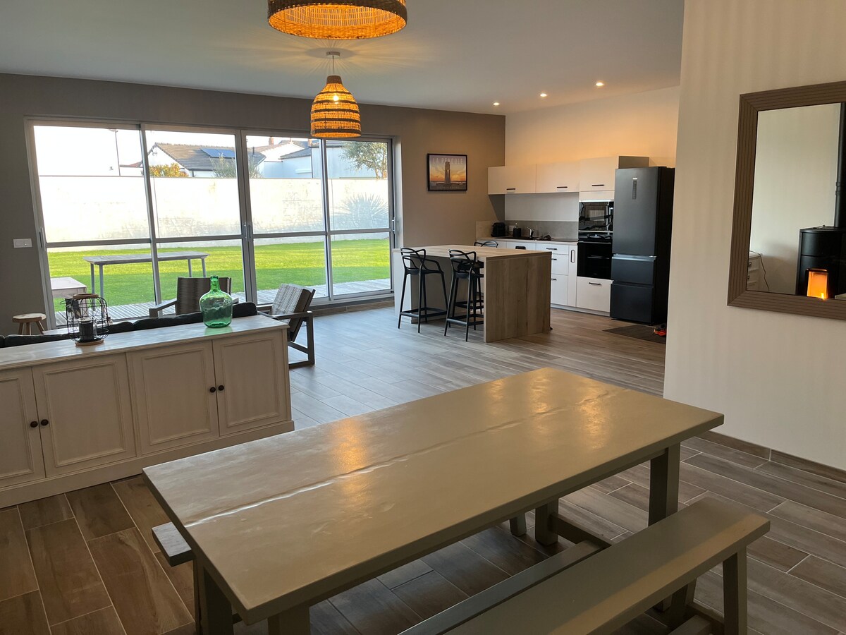 A 12 minutos de Le Puy du Fou, casa reformada en 2018 al fondo de una pequeña calle sin salida que termina en una gran zona verde. Ideal para 6 personas (clasificación 4 * por las oficinas de turismo de Francia), sin embargo, tiene 8 camas. 3 dormitorios, 2 baños con inodoro arriba, sala de estar con cocina abierta, inodoro en la planta baja, jardín cerrado, terraza y barbacoa. Aparcamiento privado. Wifi Dependencia común con otra casa que ofrece actividades lúdicas (ping-pong, futbolín, juegos al aire libre)