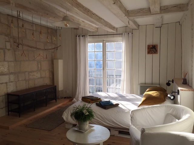 En el corazón del barrio histórico de la catedral de Saint Gatien y en el seno de un edificio de sillería y entramado de madera del siglo XVI, el RUDELABAR es un lugar de vida con colores relajantes: blanco y negro mezclados con la madera natural. Bañado por la luz que entra por una gran ventana con vistas a las terrazas de las hermosas casas vecinas del barrio del palacio de bellas artes. Para que su estancia en este lugar tranquilo sea lo más agradable posible, una cama grande de (160/200) con un colchón muy cómodo
