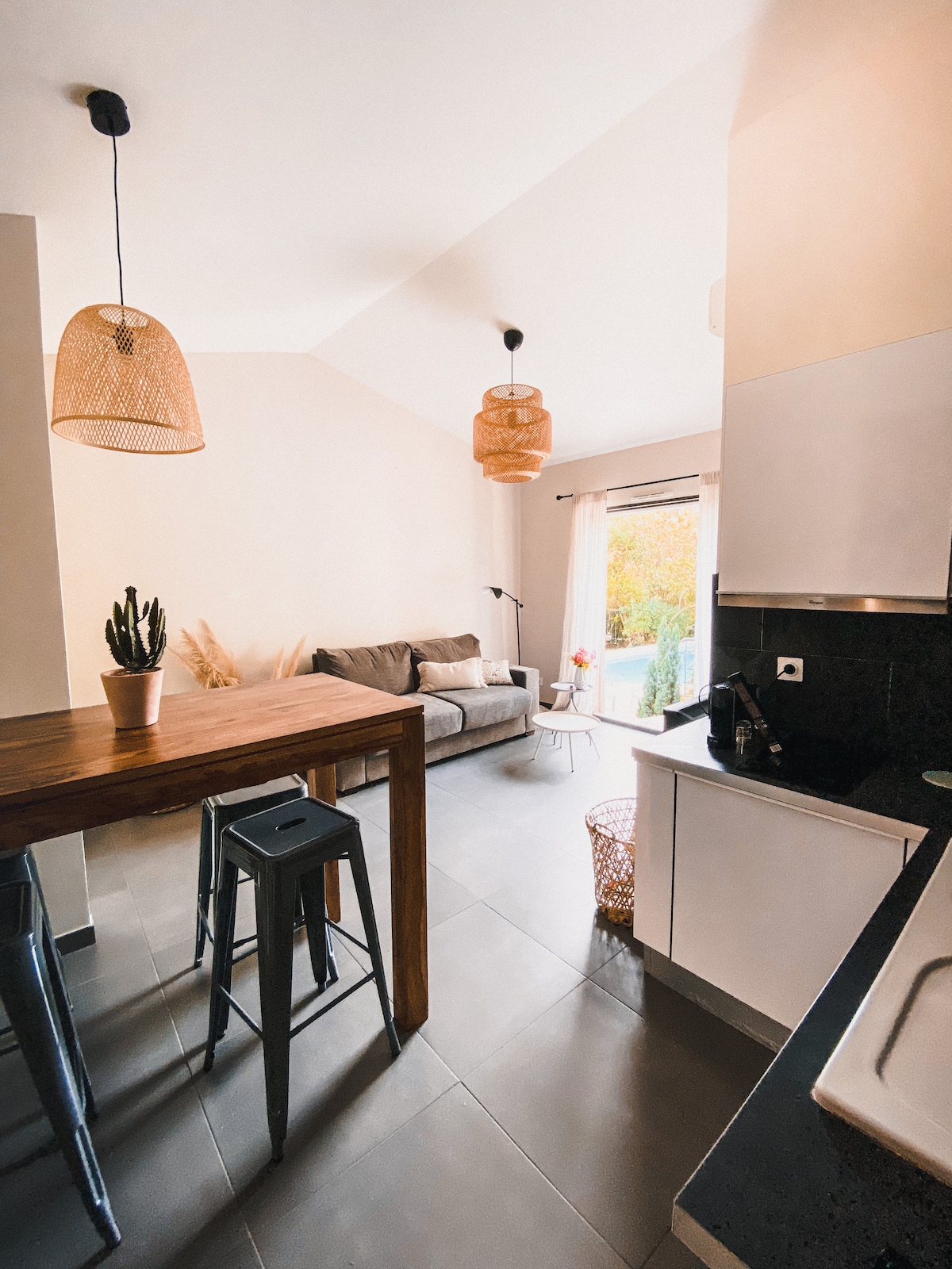 ¡Le damos la bienvenida a nuestra encantadora casa de campo provenzal! Viva como en una novela de Pagnol, rodeado de sol y del canto de las cigarras. Ubicada entre viñedos y campos de lavanda, la casa ofrece vistas impresionantes que se extienden hasta Sainte-Victoire. ¡Disfrute de su copa de vino rosado mientras contempla la mágica luz dorada de la puesta de sol! ¡A los niños les encantará el jardín! No hay acceso al transporte público. Casa de campo renovada con cariño, que combina el encanto del viejo mundo con la comodidad moderna. Jardín en constante evolución. Capacidad para hasta 6 adultos + un bebé.