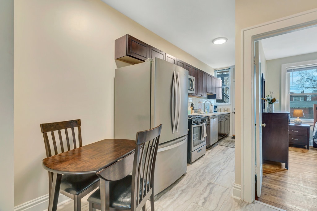 Discover the charm of this historic 120+ year-old condo, offering over 900 sq ft of comfortable living space with two bedrooms and one bathroom. Enjoy the blend of timeless style and modern updates, including ceramic tile in the kitchen and bathroom, carpeted bedrooms, and hardwood floors in the living areas. Street parking is available, with optional garage access for longer stays 5+nights. Includes a refrigerator, HVAC, dishwasher, stove, microwave, high-speed WiFi, and Smart TV
