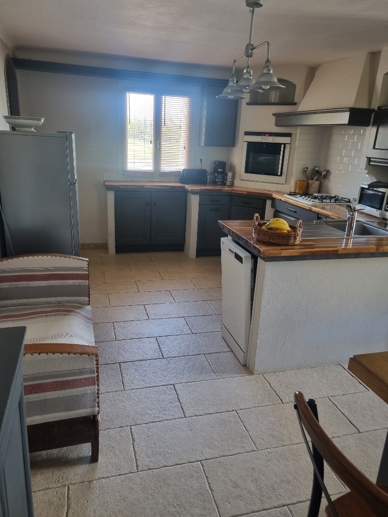 Maison indépendante en pierre sur 2 niveaux, idéale pour un couple ou 2 adultes et deux enfants, entièrement rénovée, au calme, à 850m d'altitude. RDC: - Cuisine neuve entièrement équipée - TV écran plat - Salle d'eau douche italienne ÉTAGE: - 1 lit 160 X 190 - 1 canapé lit 140 X 190 (dans la même pièce) Terrasse semi-couverte avec vue Draps, serviettes de toilettes, torchons fournis Le drap de piscine ne sont pas fournis Frais de ménage (20€) compris dans le tarif