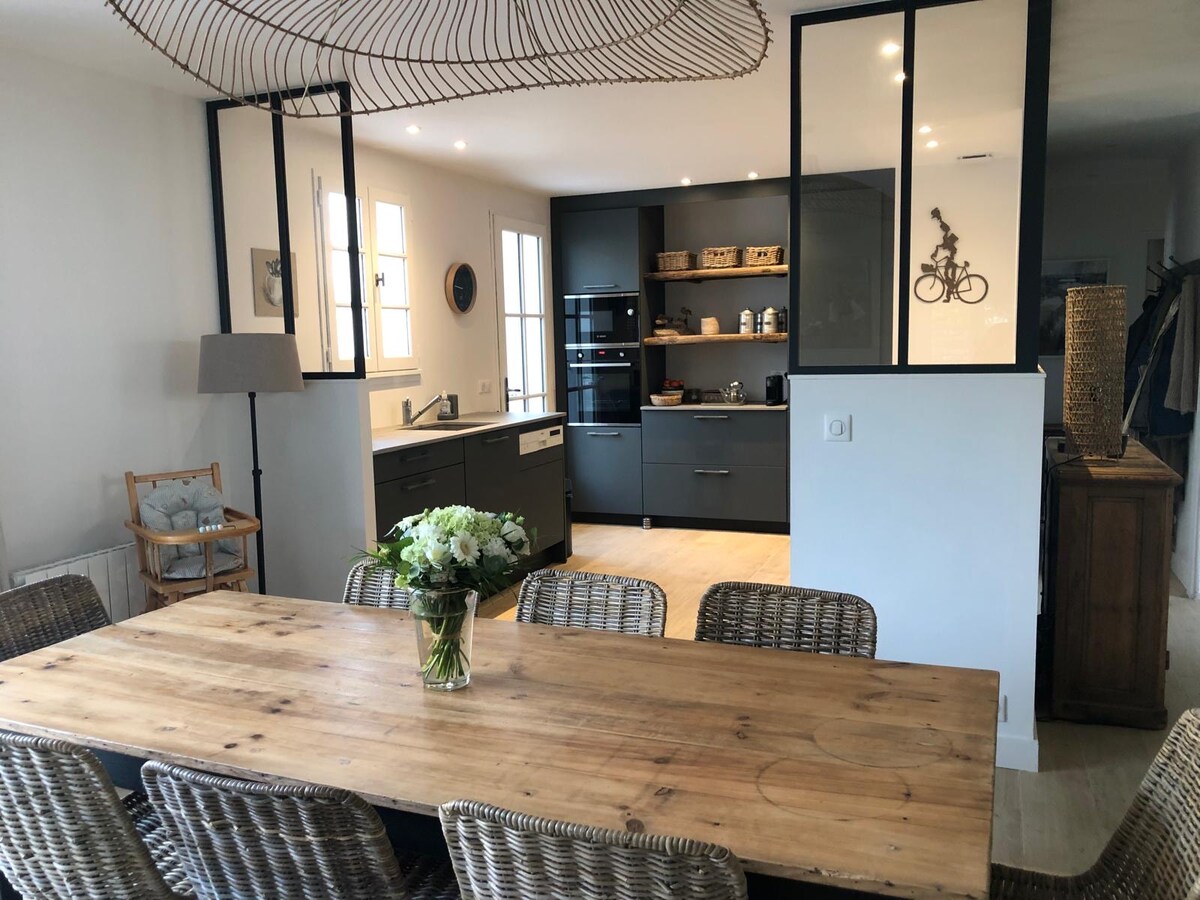 Hermosa casa retaise para darle la bienvenida, en pareja para una estancia de cocooning, en familia o entre amigos 3 dormitorios, 8 camas para adultos y 1 cuna 2 baños, 2 aseos, El salón, el comedor y la gran terraza hacen que esta vivienda sea funcional a pocos pasos del pueblo y del océano. barbacoa, ducha exterior, aparcamiento, No se proporciona ropa de cama. Atención Entrada de coche: 2m50 de ancho y 190 de altura .