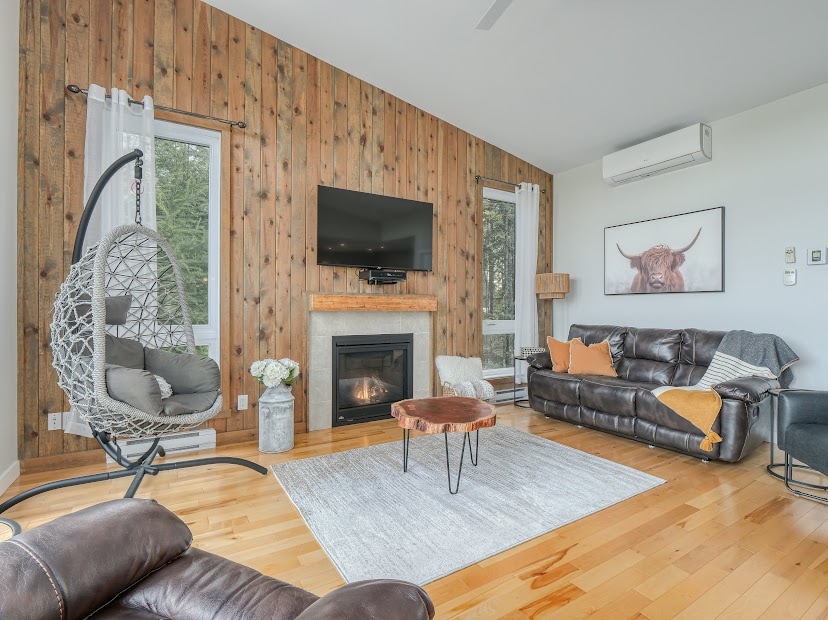 For your vacations choose the Chalet Horizon, an Eden in nature with a view of the mountains ♥ You will appreciate the chalet thanks to: ✷ Semi-private beach 5 minutes away ✷ Large private land, totally surrounded in pure nature ✷ Large bright windows with a view of the horizon ✷ Luxurious and comfortable spaces ✷ Spa open all year round ✷ Terrace equipped with a BBQ and gas fireplace ✷ Smart TV with speakers ✷ Indoor cozy gas fireplace ✷ Foosball table ✷ Wine bar