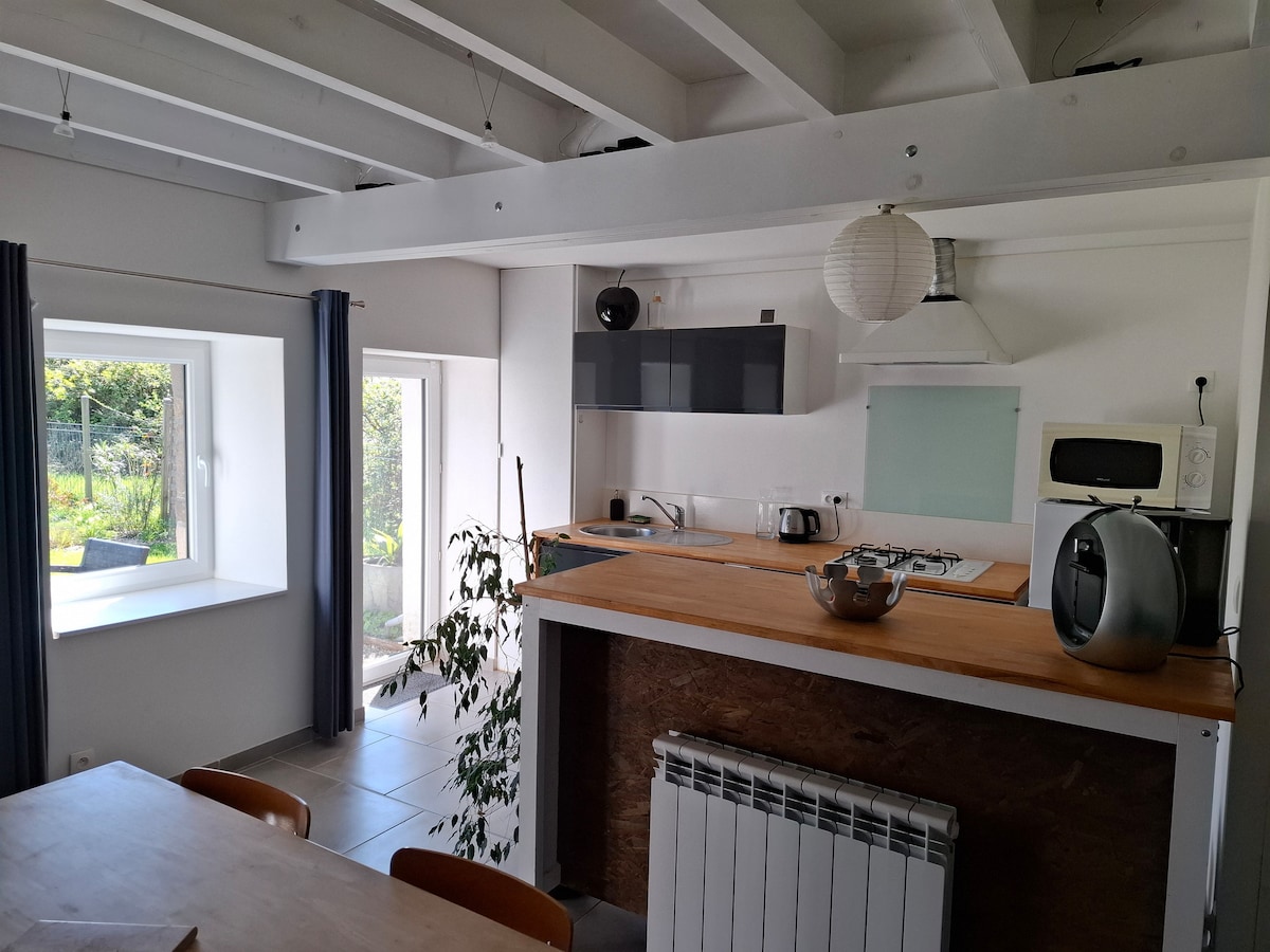 Ya sea de vacaciones o de viaje de negocios, descubra una casa rural amueblada de 35 m2, situada en el centro de la ciudad, cerca de todos los servicios, diseñada para alojar de 1 a 4 viajeros. Relájese en su patio soleado, un lugar ideal para descansar después de su día, mientras tiene una buena conexión para los trabajadores incansables. Disfrute de su velada y duerma cómodamente. Este rincón, situado en una dependencia de nuestro jardín, ha sido pensado para que se sienta como en casa.
