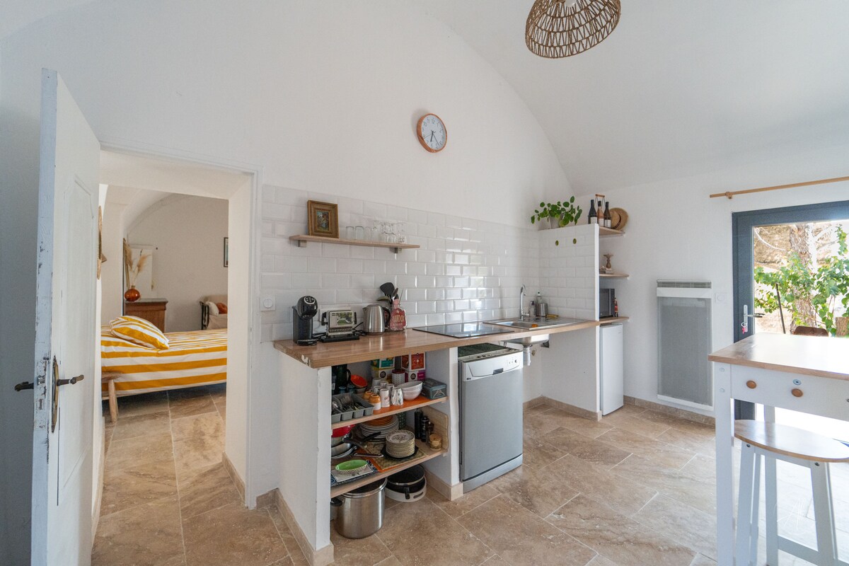 En el corazón de la naturaleza, entre viñedos y olivos, encantadora casita rural para los amantes de la tranquilidad. El alojamiento, en la prolongación de nuestra casa familiar, está enclavado en pleno campo, aislado de cualquier molestia. Con una ubicación ideal, entre las Cevenas (a 1 hora en coche) y el mar (a 45 minutos), hay muchas actividades cerca, como senderismo, paseos, lugares turísticos... Todos los servicios (médico, farmacia, tiendas, cine, restaurantes, etc.) están a 8 km en coche.