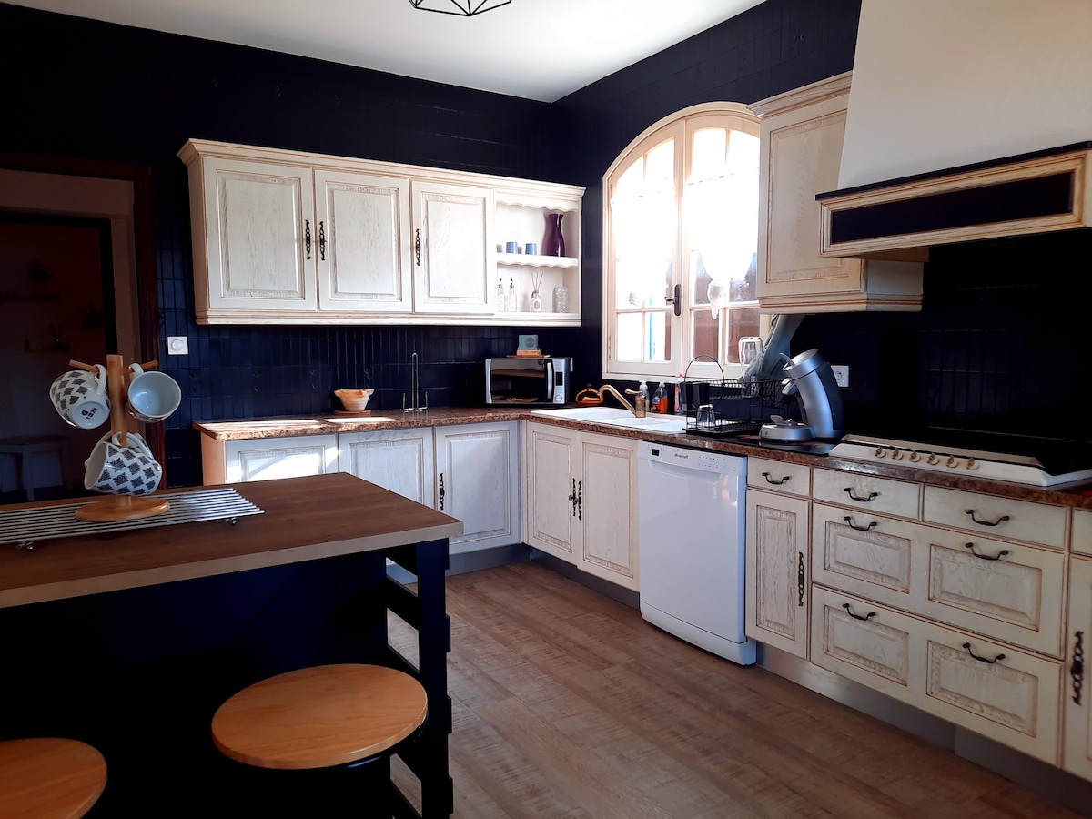 Muy bonita parte de nuestra masía, entrada independiente de la nuestra. El alojamiento tiene un gran patio con barbacoa, jardín y acceso directo a la piscina de 9x4 con jacuzzi integrado. (⛔️ Abierto del 15 de mayo a finales de septiembre). Combina encanto y sobriedad para que se sienta como en casa. Encontrará todo a pie, como la farmacia, el supermercado, la panadería... ¡Ideal para familias con niños o simplemente en pareja o entre amigos! Ropa de cama incluida, sin toallas.