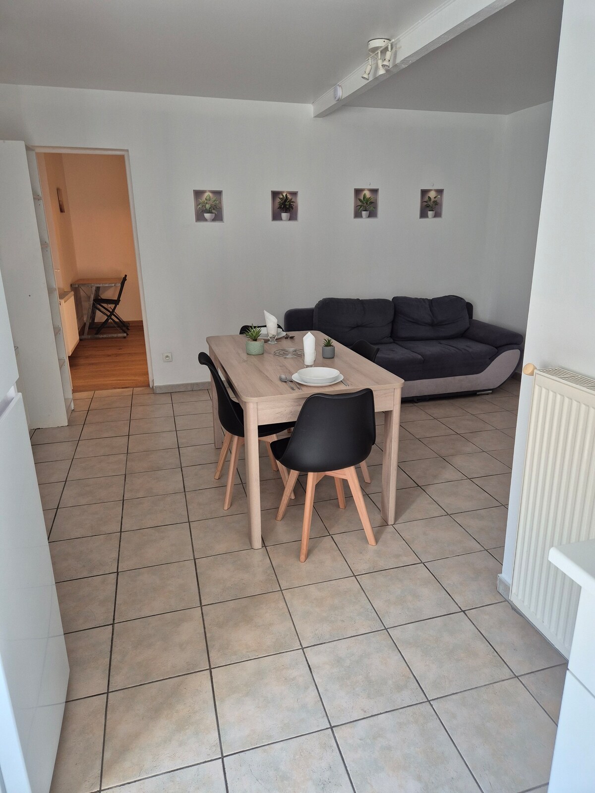 Simplifíquese la vida en este alojamiento tranquilo y céntrico. cerca de la autopista y el supermercado apartamento independiente en la casa de los propietarios Muy soleado, patio cerrado posibilidad de aparcar en el patio o en el aparcamiento público, gran cocina bien equipada , Wi-Fi, microondas, horno, TV grande, lavadora, aspiradora, sábanas y toallas sofá convertible con capacidad para 2 personas más (10 €) pequeña terraza con mesa y sillas.