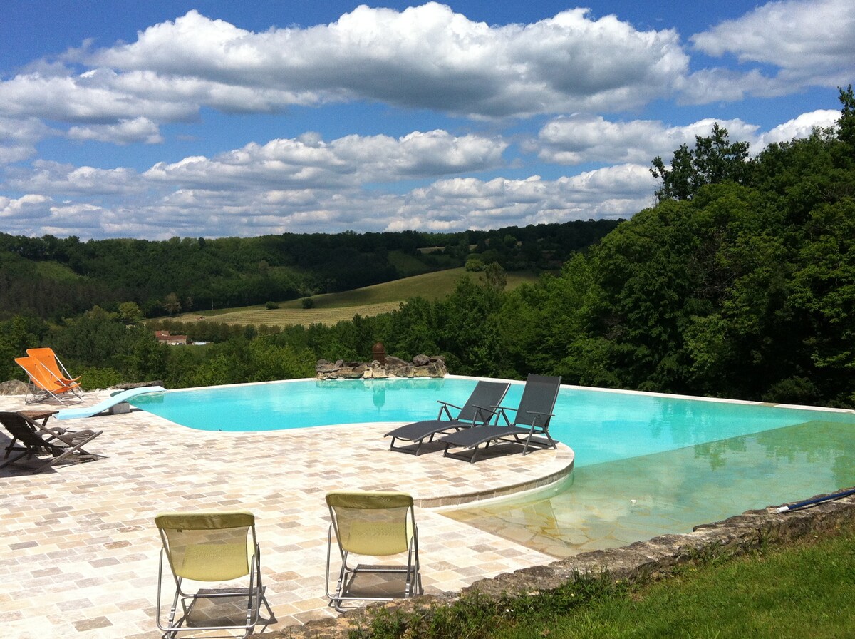 Bienvenido a nuestra hermosa casa de campo enclavada en colinas onduladas y boscosas. Disfruta de una vista excepcional de 180° de la Dordoña mientras nadas en nuestra piscina infinita (abierta de mayo a octubre solamente) o en la bañera de hidromasaje (disponible todo el año). Nuestra propiedad se encuentra en 4 acres de tranquila campiña en la cima de los verdes valles de la Dordoña. Relájate, tómate una copa de vino y observa cómo los globos aerostáticos pintan el cielo al amanecer o al atardecer. Utilice nuestras bicicletas para explorar el lugar o hacer una barbacoa al aire libre y disfrutar del paisaje.