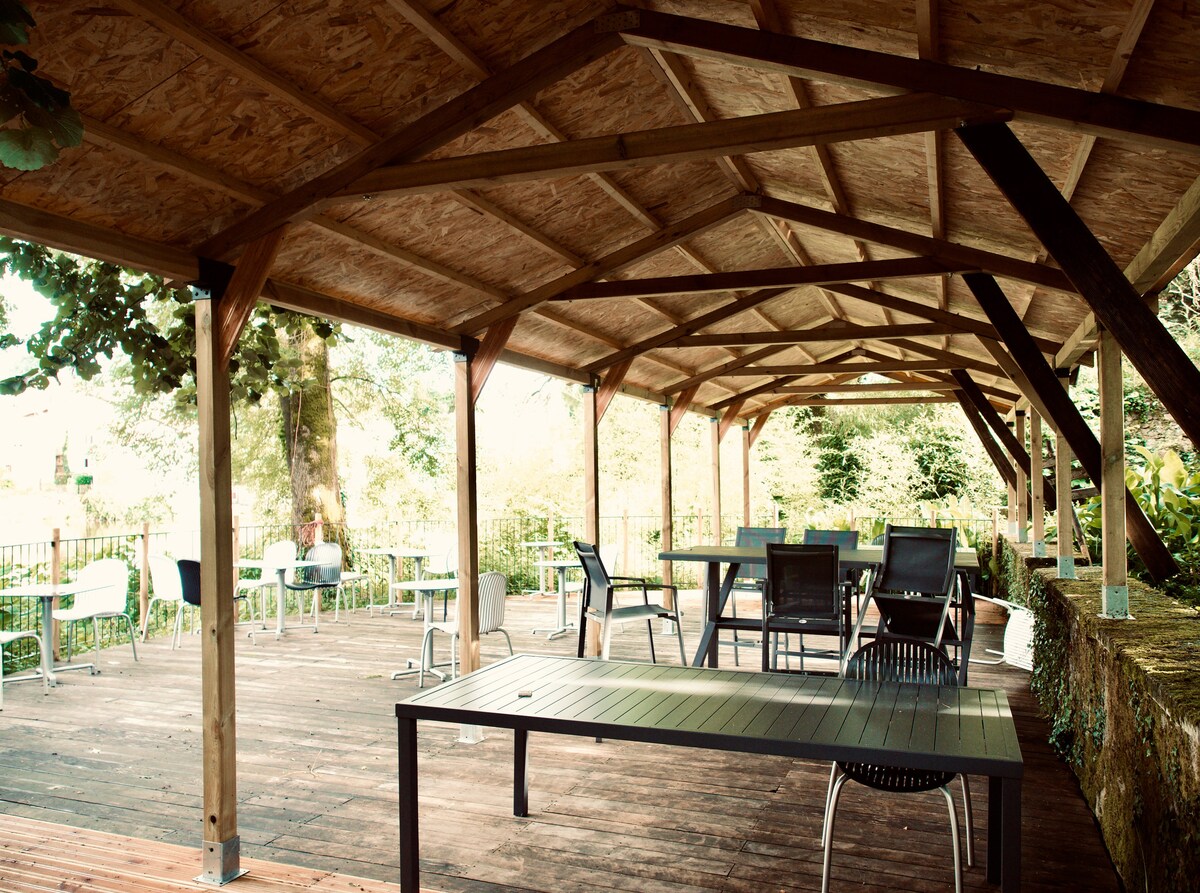 Bienvenue au Moulin Monjonc ! Venir au moulin Monjonc sera synonyme de détente, calme, zénitude... Vous entendez déjà le bruit de l'eau, le chant des oiseaux ?! Vous vous voyez déjà lézarder au soleil, passer de pierres en pierres sur la Glane, essayer de pêcher (1ère catégorie), buller dans le jacuzzi, ne rien faire tout simplement ? Parfait ! Rassurez-vous ! Toute civilisation sera tout de même à proximité (5 minutes de différents commerces) ! Alors, vous venez quand ?! À tout de suite !