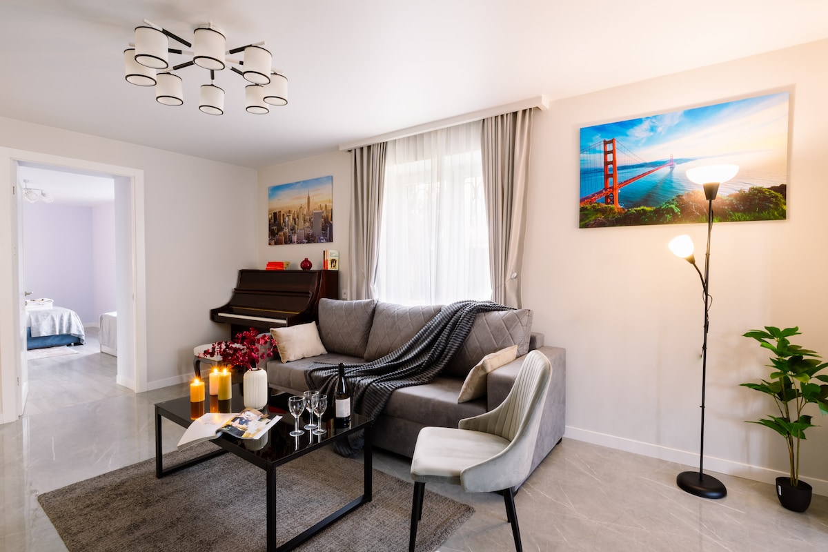 ¡Un espacioso y luminoso apartamento en el corazón de Ereván!Excelente ubicación y cómodamente accesible a todo lo que necesitas, desde restaurantes, cafeterías, lugares turísticos. El apartamento está totalmente equipado con todo lo necesario para tu viaje. Sala de estar comedor con sofá cama, cocina con electrodomésticos, microondas y cafetera, dormitorio con cama doble y baño. Tu salud es nuestra prioridad. Nuestro hogar sigue un protocolo de limpieza mejorado, con una limpieza profesional y desinfección estratégica.