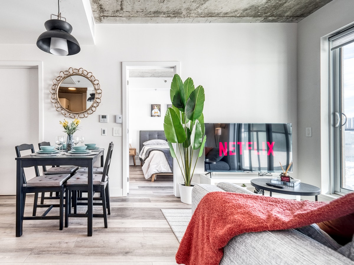 Escapada espaciosa 1BR/gimnasio/estacionamiento de pago