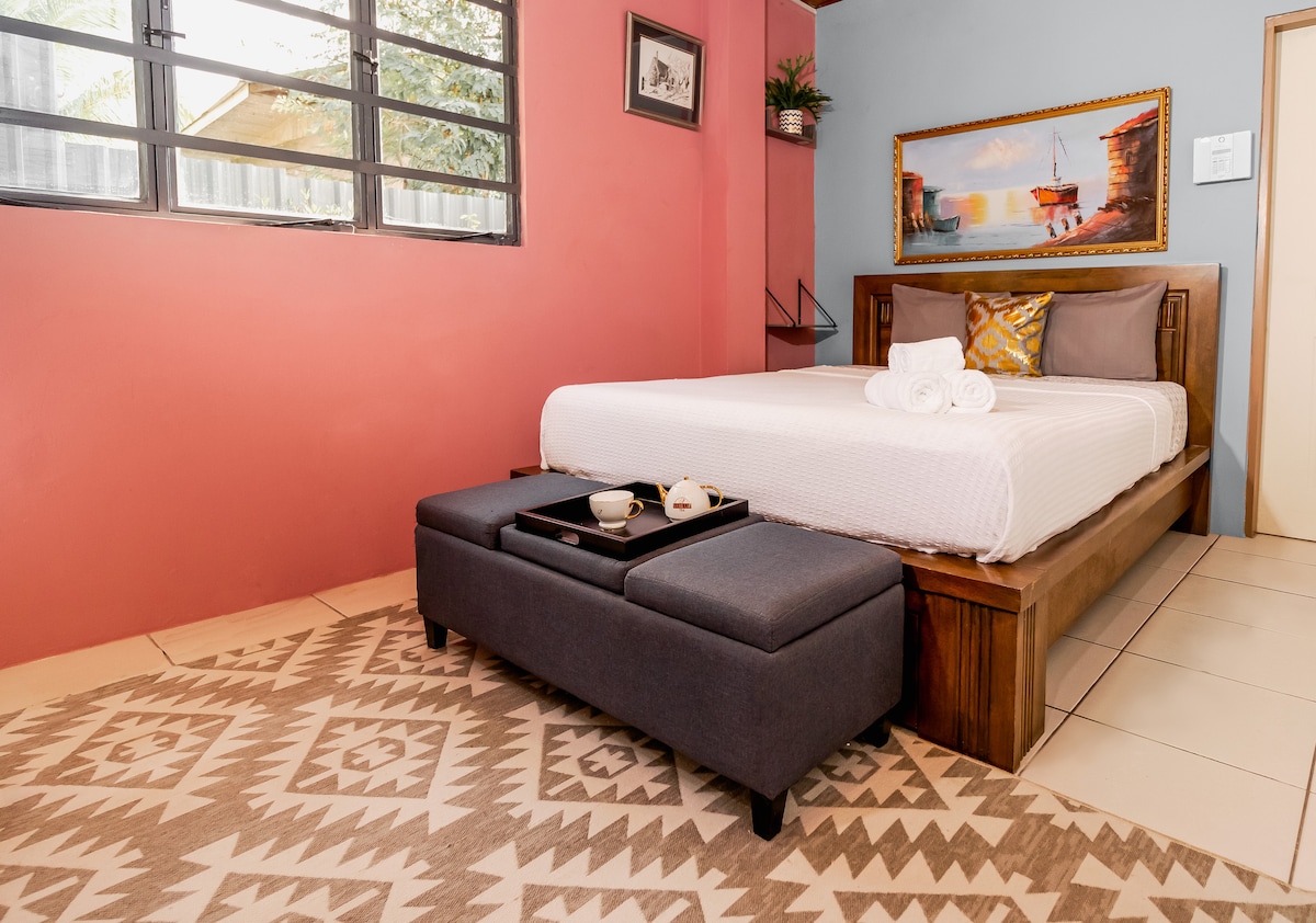 Relájate en un oasis de estilo y comodidad en este espacio céntrico. A solo 7 minutos del aeropuerto, del centro comercial Trincity y de otras zonas comerciales. Ideal para viajes de negocios y vacaciones en pareja/con amigos. Refúgiate en nuestro dormitorio principal moderno Boho, con baño de diseño de alta gama, o sírvete tu copa favorita de nuestro pequeño vendedor de vinos. Diseñado con una cocina de acero inoxidable totalmente equipada para preparar tus platos favoritos. Relájate en nuestro acogedor patio y asa tus aperitivos sobre nuestra pequeña chimenea.