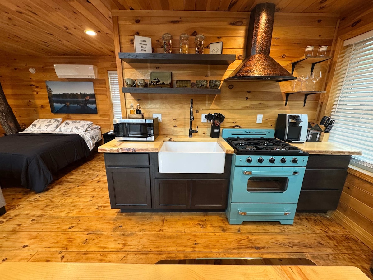 Totalmente equipado para todas las estaciones, 2 dormitorios con 1 cama de lujo en cada uno, ducha a ras de suelo, electrodomésticos de cocina de tamaño completo. Jacuzzi privado cerrado, sauna de vapor, ducha fría al aire libre/reapertura en primavera de 2026, porche con mosquitero. Fogata con leña. Ofrecemos todas las comodidades que necesitas para tener una estancia increíble. Uso estacional de barbacoa y raquetas de nieve. Senderismo, senderos en quad/trineo, cascadas, cervecería artesanal, tiendas, restaurantes y la montaña Crabbe, todo cerca. Impresionantes puestas de sol del magnífico río Saint John.
