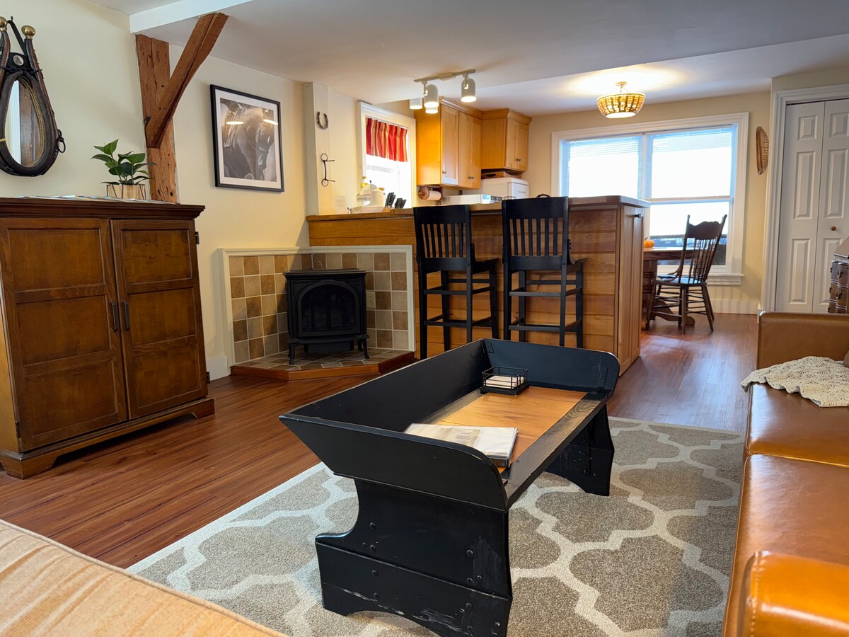Esta encantadora casa de campo está cuidadosamente amueblada, ¡es tu hogar lejos de casa! Limpia y acogedora, un dormitorio con cama tamaño queen y cocina completa. Siéntate frente a la chimenea de gas o en tu propia terraza privada con vistas a los 105 acres de Black Brook Preserve. Haz senderismo, raquetas de nieve o esquí de fondo justo en la puerta de tu casa. Ahora tenemos un nuevo sofá, cama, nevera, estufa, así como ducha y suelo de baño.
