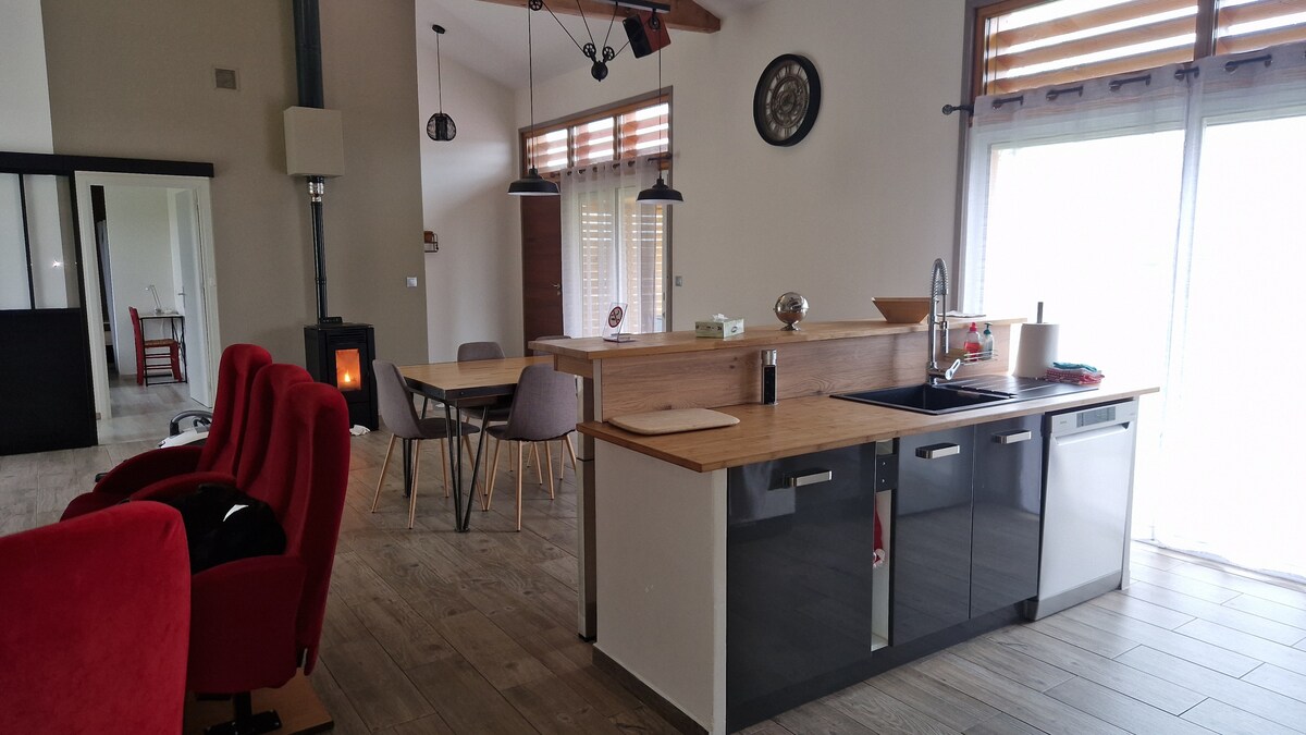 Granero independiente completamente renovado de 230 m2 en una aldea familiar de 6 hectáreas entre la tierra y el mar. Terraza y gran patio privado sin vecinos. El granero de las libélulas le permitirá descansar en la tranquilidad del campo mientras disfruta de las infraestructuras comunes de la propiedad. LAS VENTAJAS: Futbolín, billar En la propiedad compartida con las casas de campo presentes en la aldea familiar: - PISCINA CLIMATIZADA y CUBIERTA del 1 de abril al 30 de septiembre - PARQUE